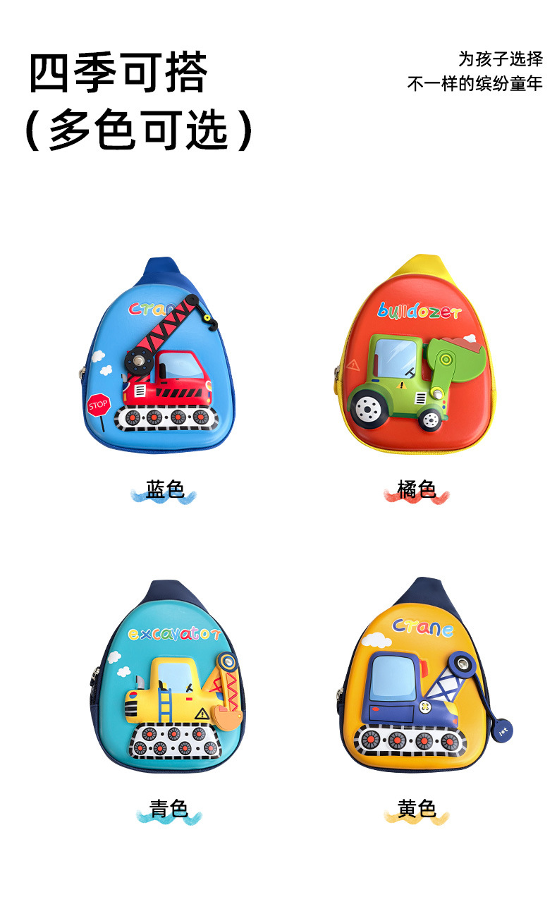 新型のかわいい子供の胸のカバンの漫画の工事の車の幼児のショルダーバッグの男の子の旅行の贈り物のレジャーのリュックサックの越境