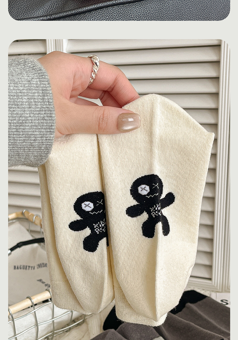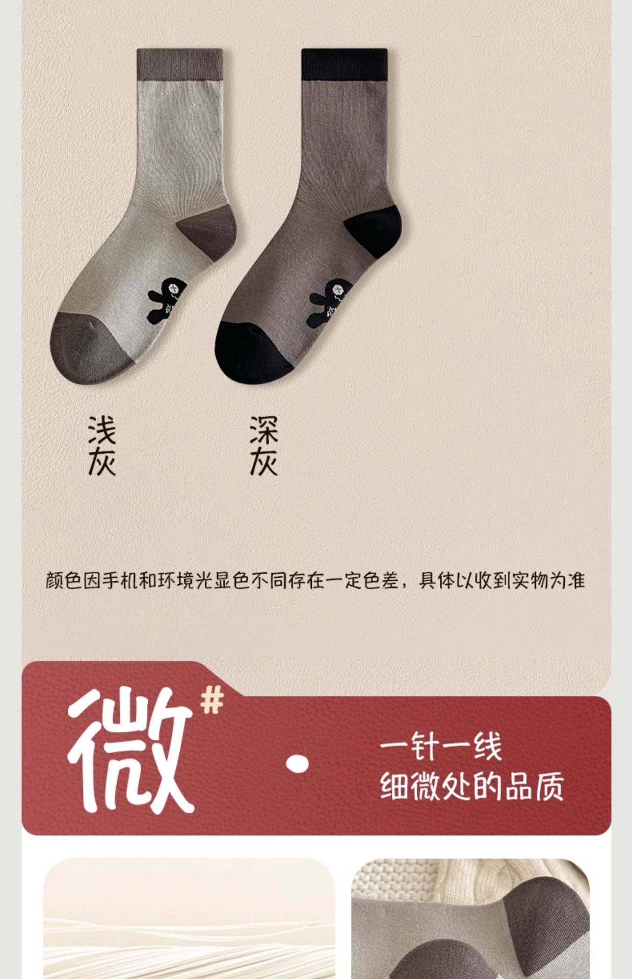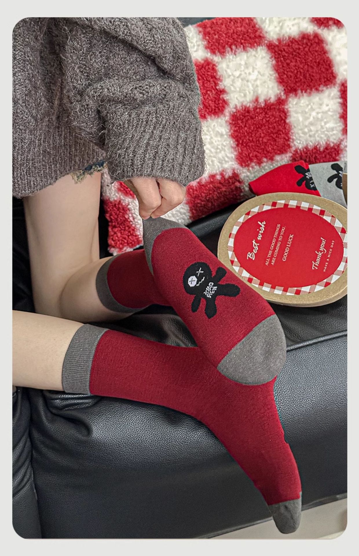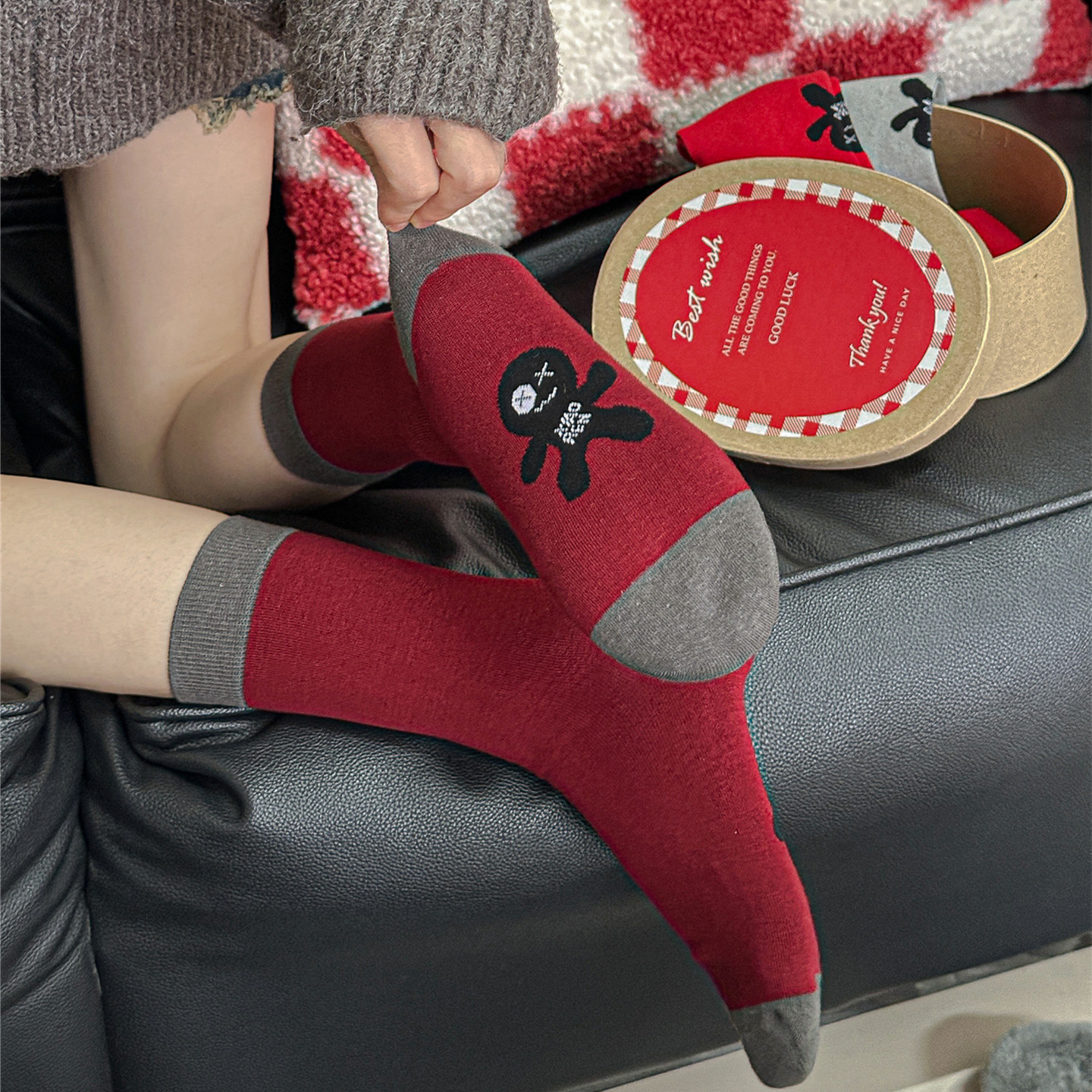 踩地袜红袜子女秋冬中筒袜卡通小人安可拉红2026马年本命年无骨袜