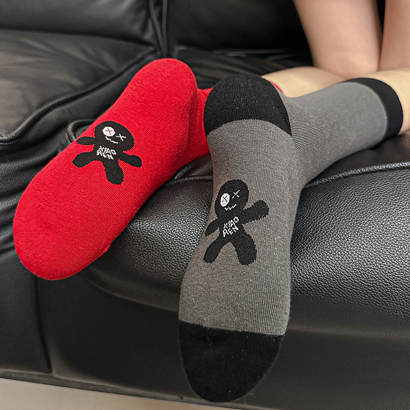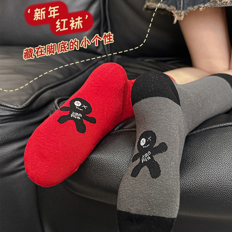马年本命年踩红袜子小人袜男女情侣新年袜结婚喜庆袜精梳棉无骨袜