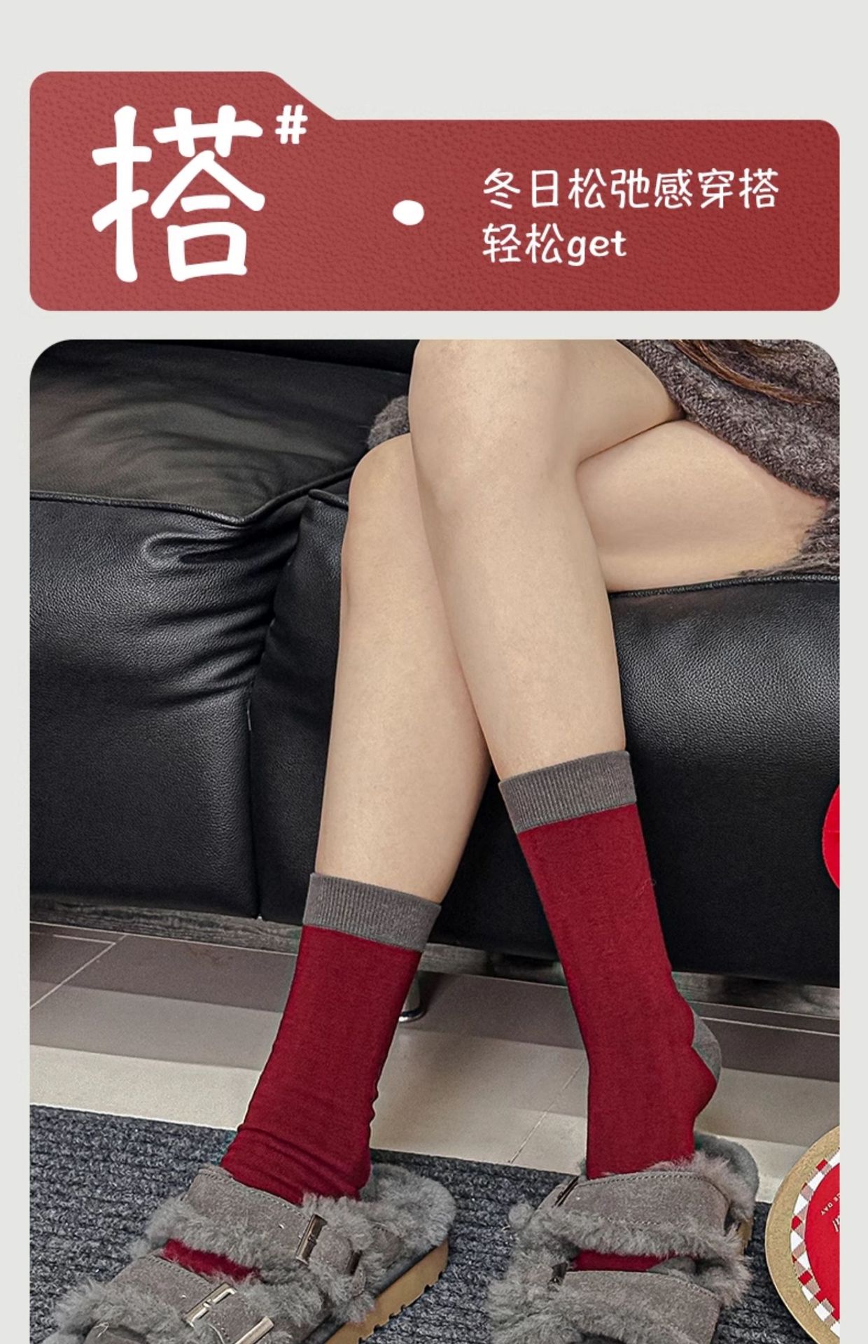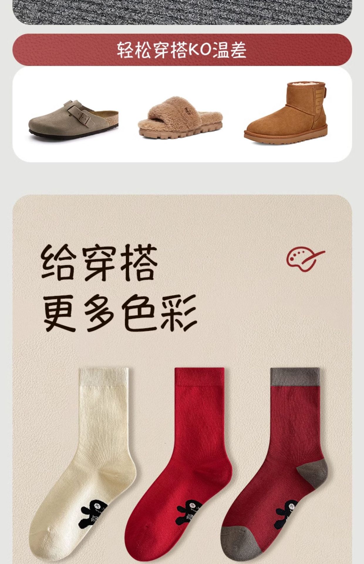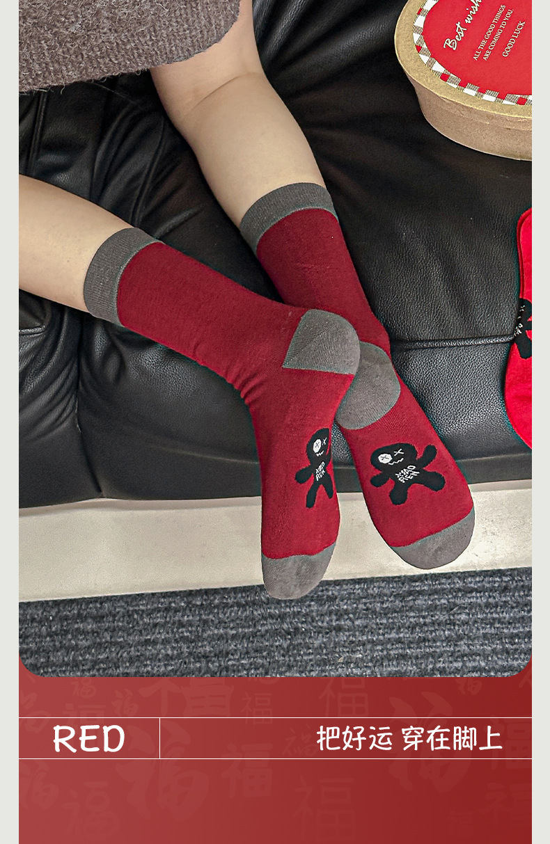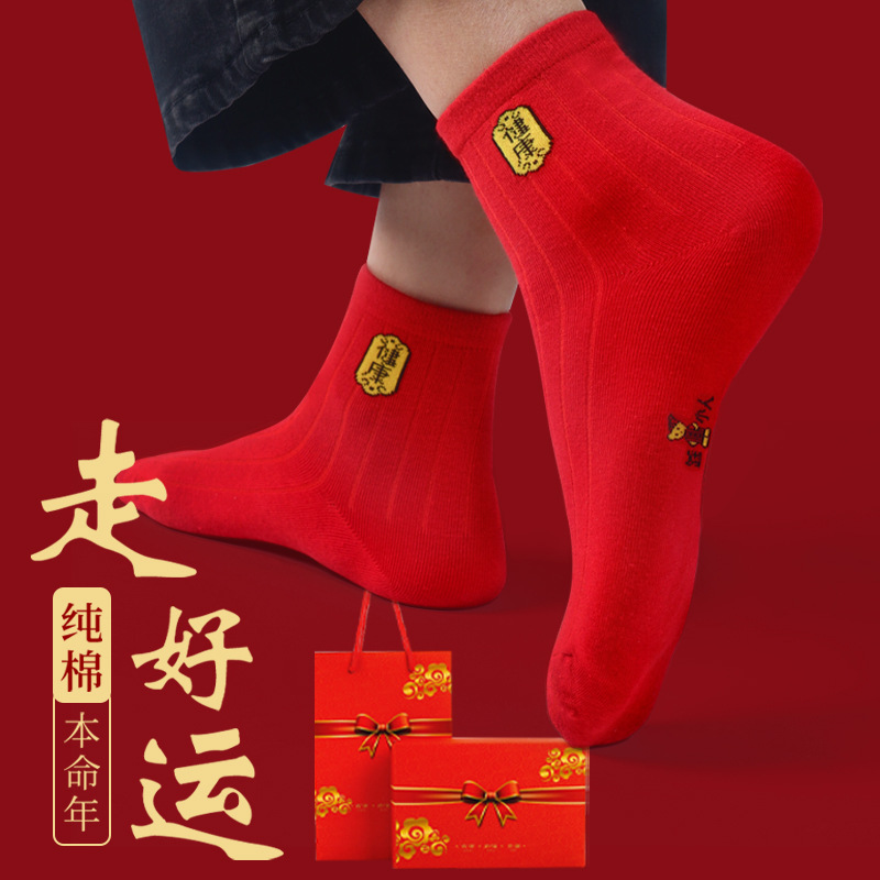 新年袜马年2026红袜子中筒袜男女秋冬礼盒装送人好运逢赌必赢棉袜