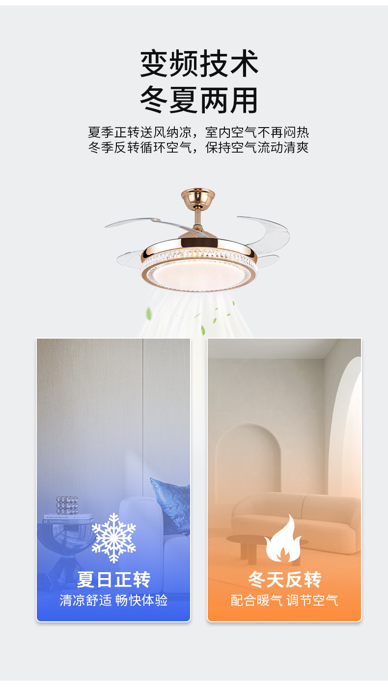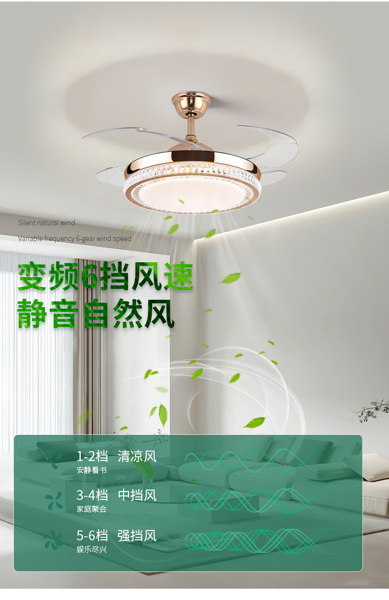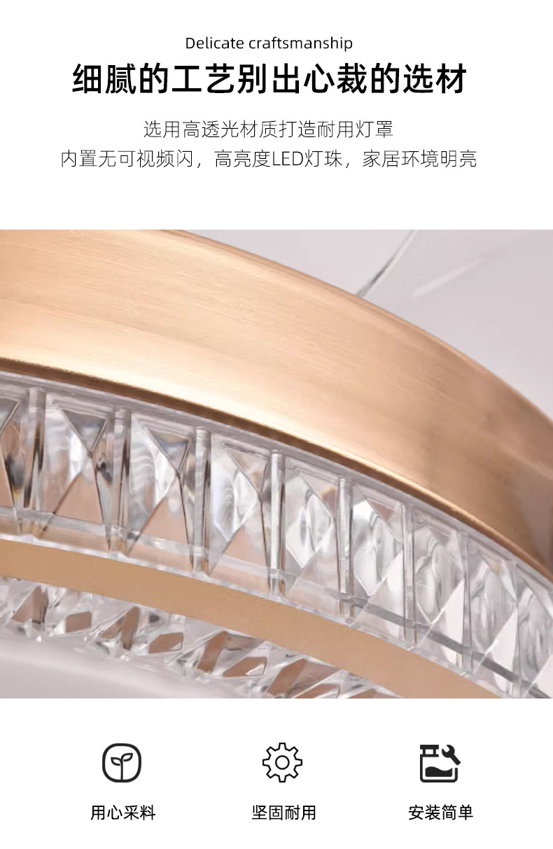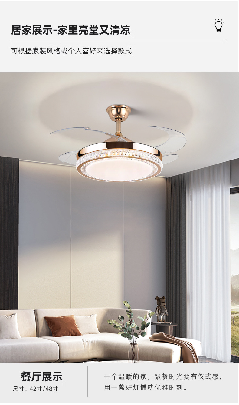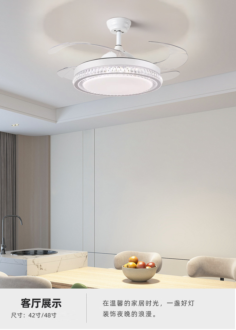 璀璨水晶隐形风扇灯客厅卧室餐厅轻奢42寸LED吊扇灯6档调节风速