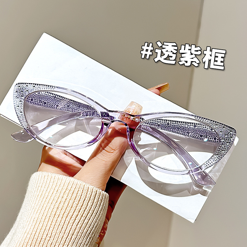 新しい人気の小さなフレームのキャットアイスプリングレッグ抗青色光老眼鏡高精細女性のメイクアップメガネフレーム