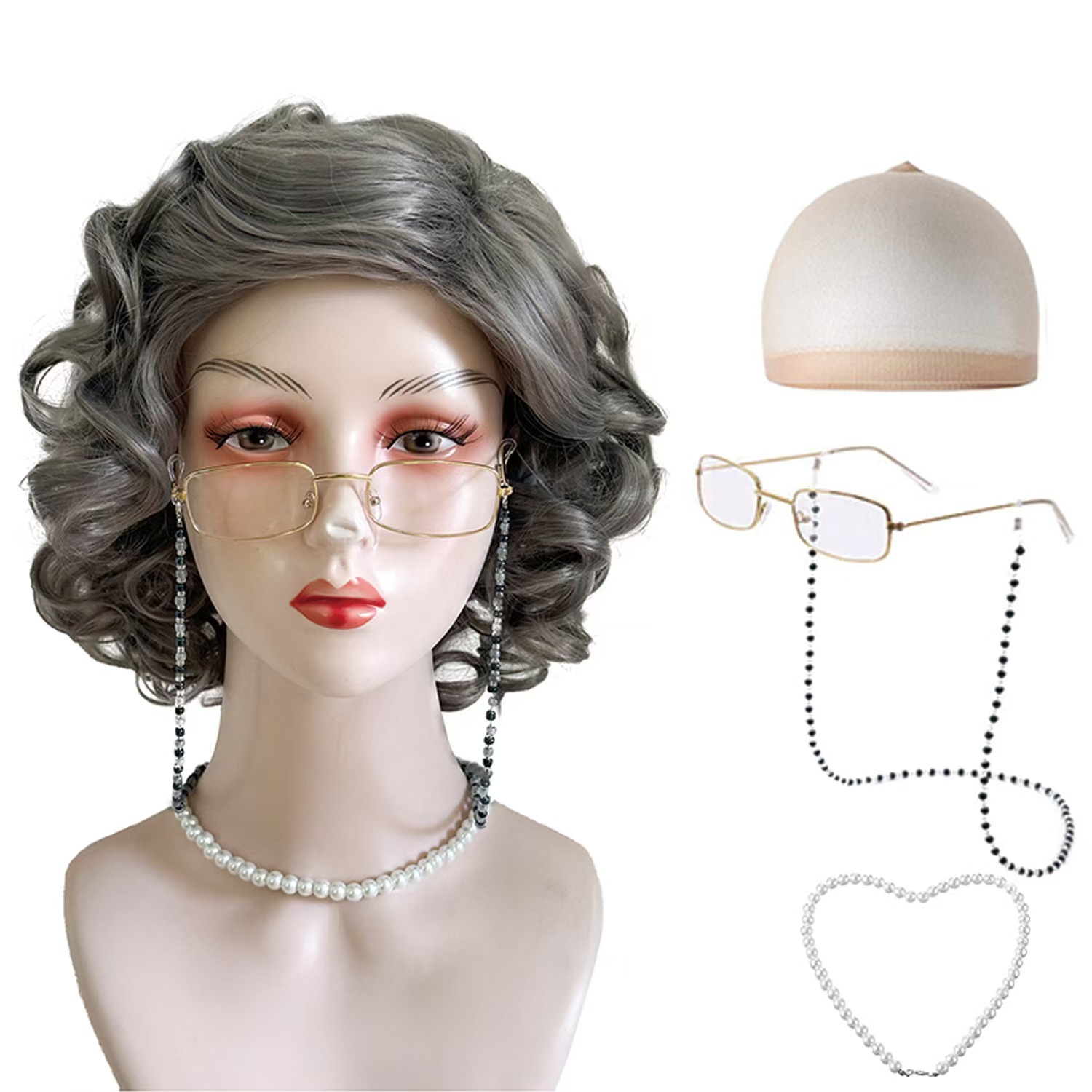 Cosのおばあさんのハロウィンのメガネは道具の小さい枠の平光鏡を演じます。