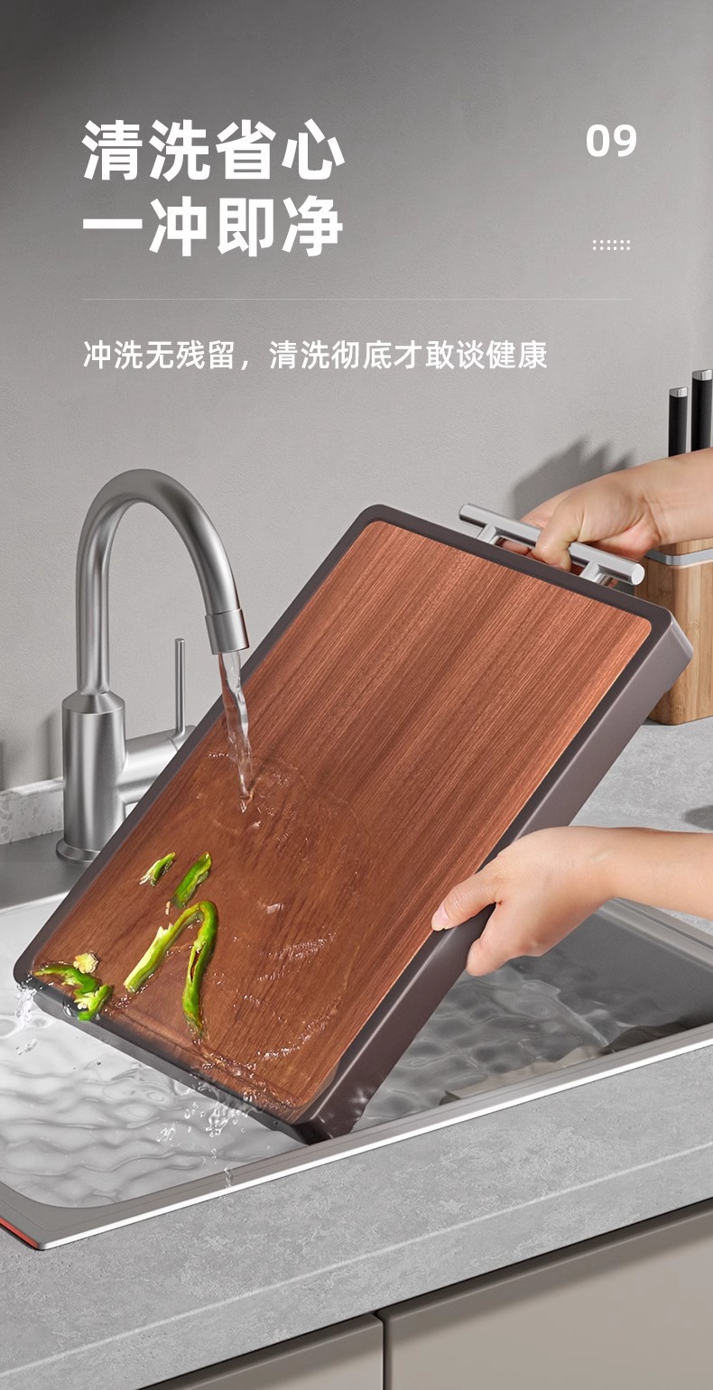 防霉抗菌家用切菜板双面黑色手柄方形案板不开裂加厚实木整木砧板