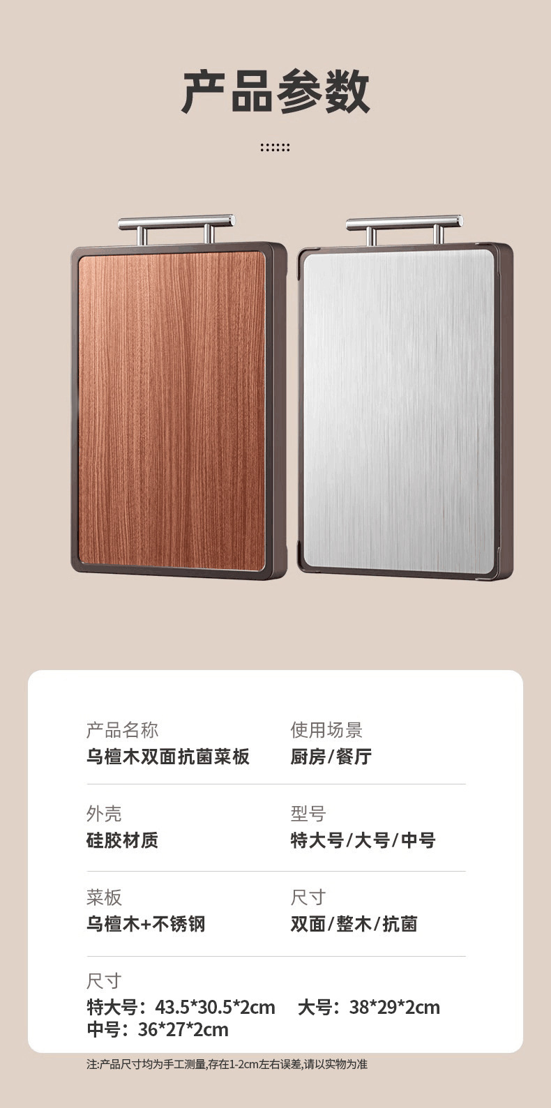 烏檀木まな板抗菌防かび家庭用ステンレス両面まな板実木まな板まな板