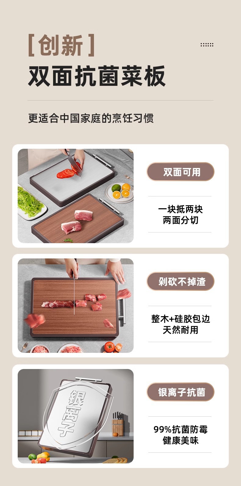 炊大皇整竹制双面多功能菜板中式简约设计防滑家用多功能砧板便携
