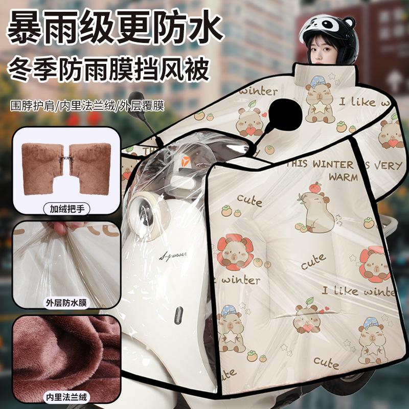 电动车挡风被冬季覆膜加厚加绒2025斗篷款防水防风罩电瓶车挡风罩