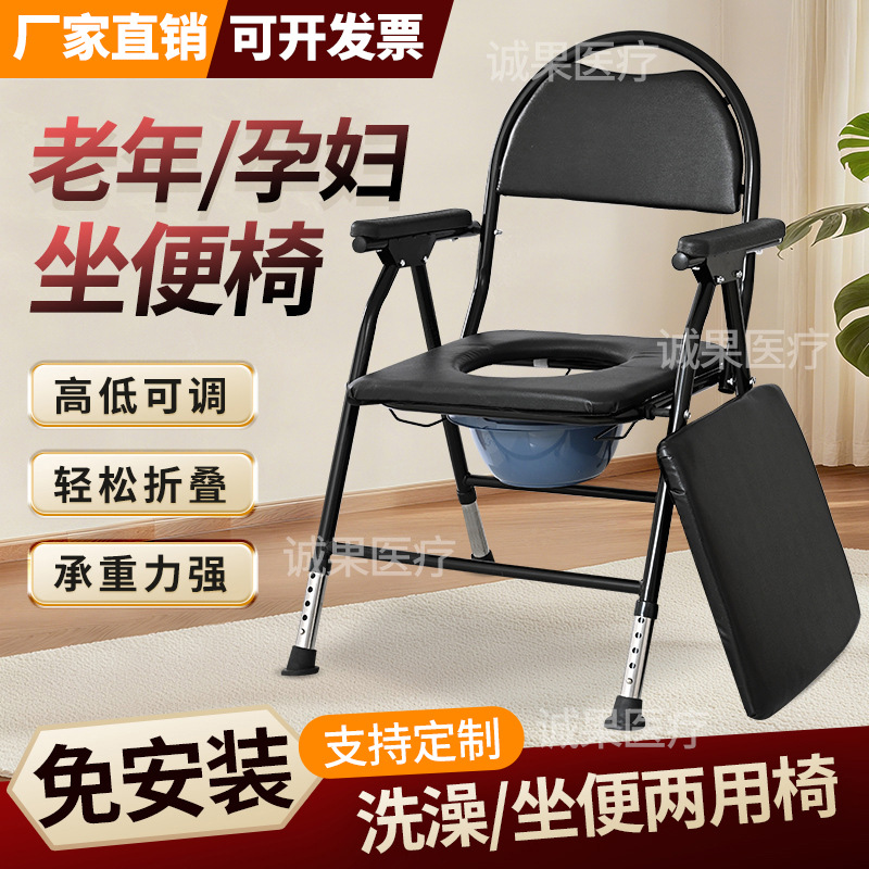 老人孕妇加厚坐便椅家用可移动带便桶坐便器厕所浴室折叠洗澡椅