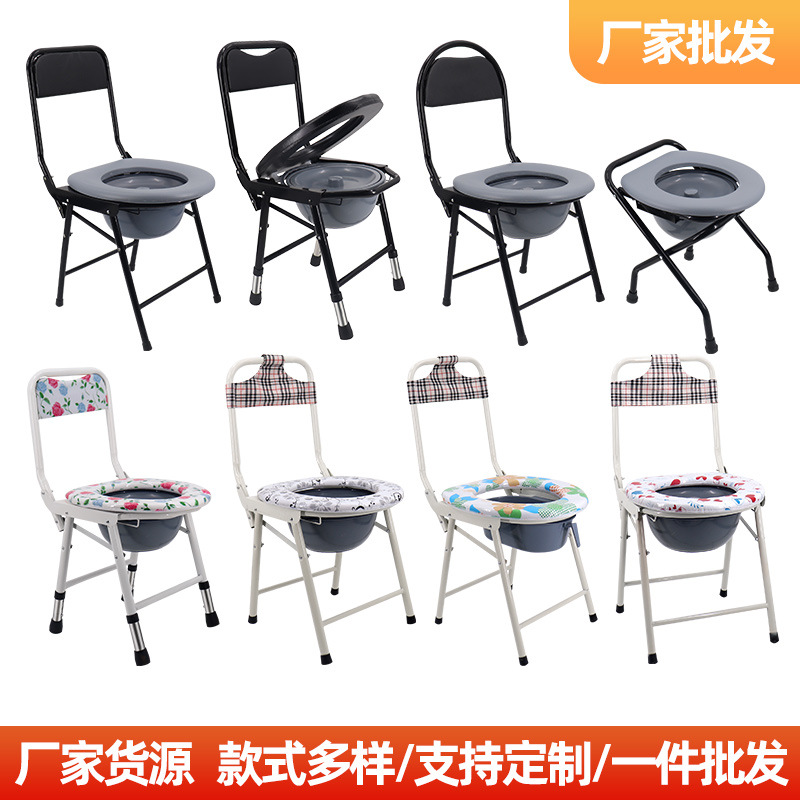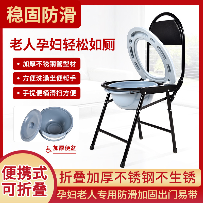家用不锈钢坐便椅批发带便盆加粗加厚便携式残疾人移动老人可折叠