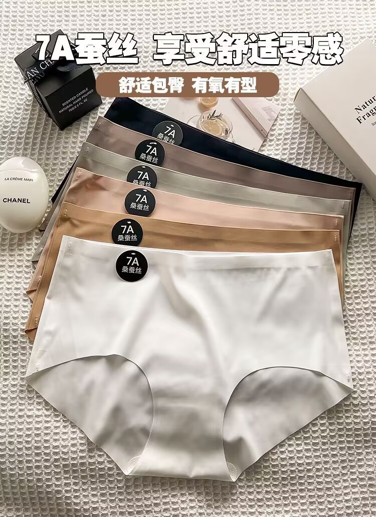 シームレスな桑蚕糸7A素材、ミドルウエストの女の子用アイスシルクシンプルショーツ、ヒップアップ効果のある通気性のあるレディース三角パンツ、大きいサイズ