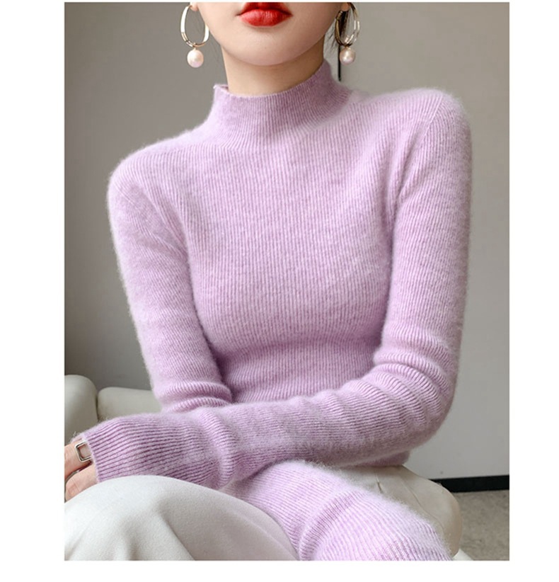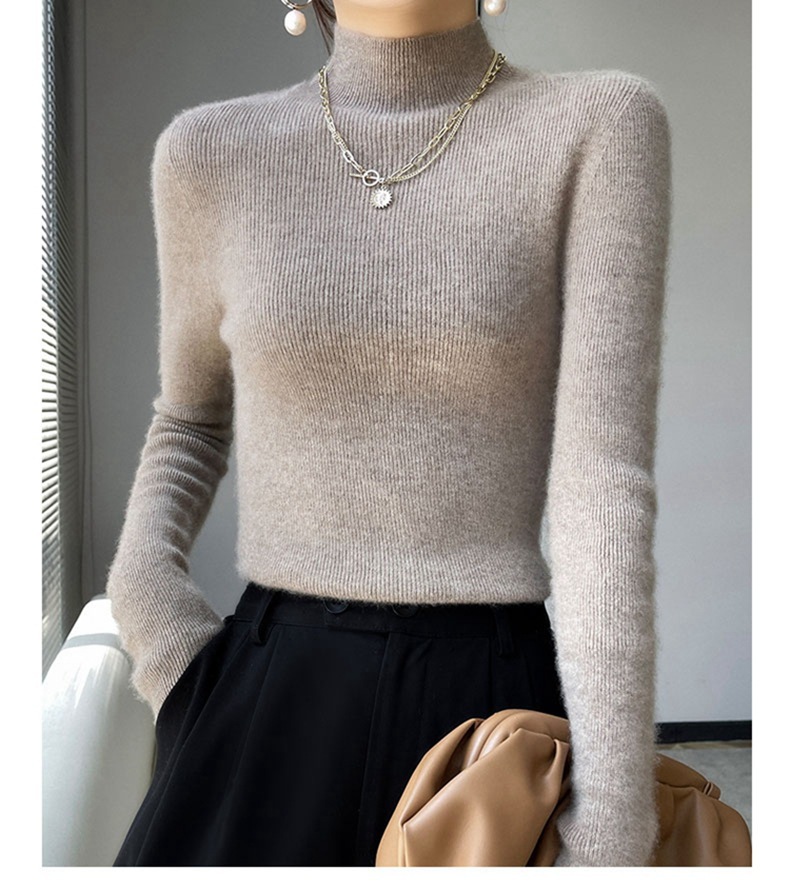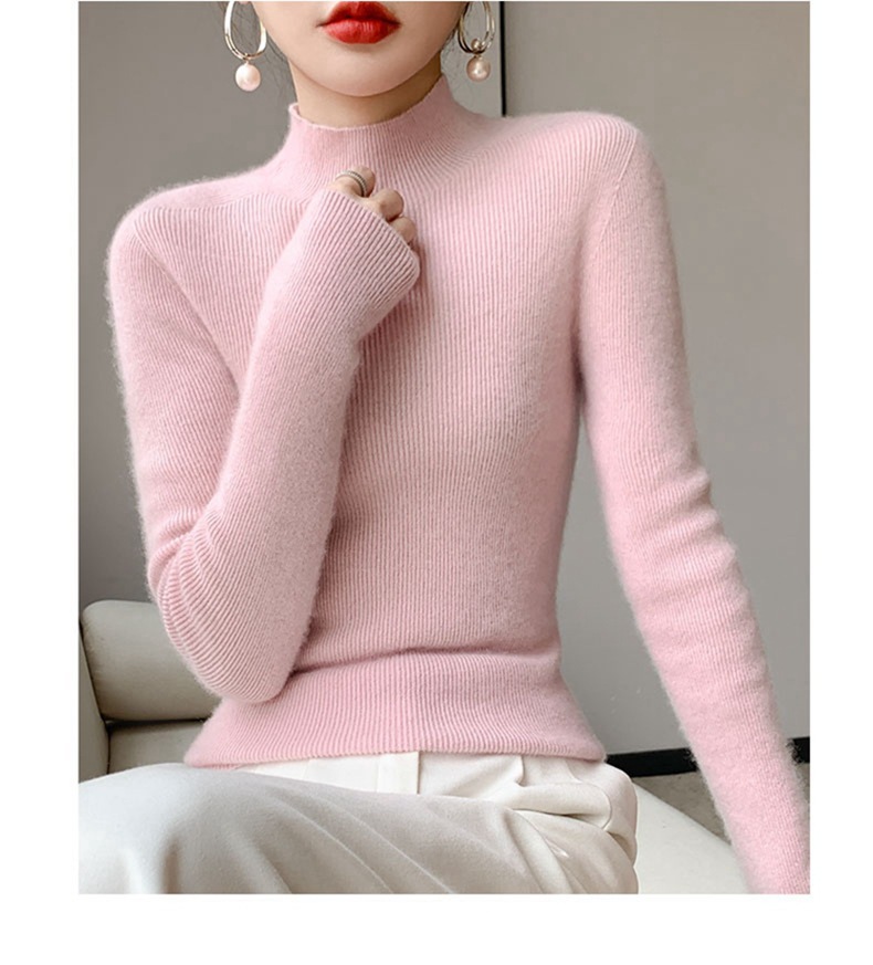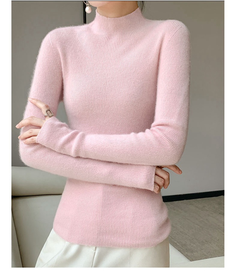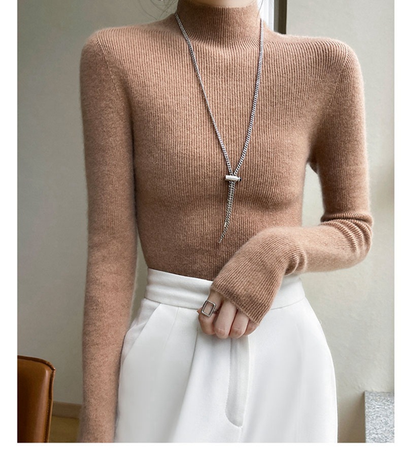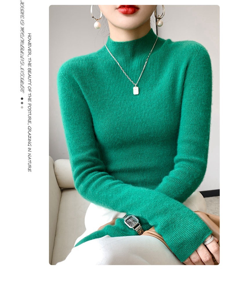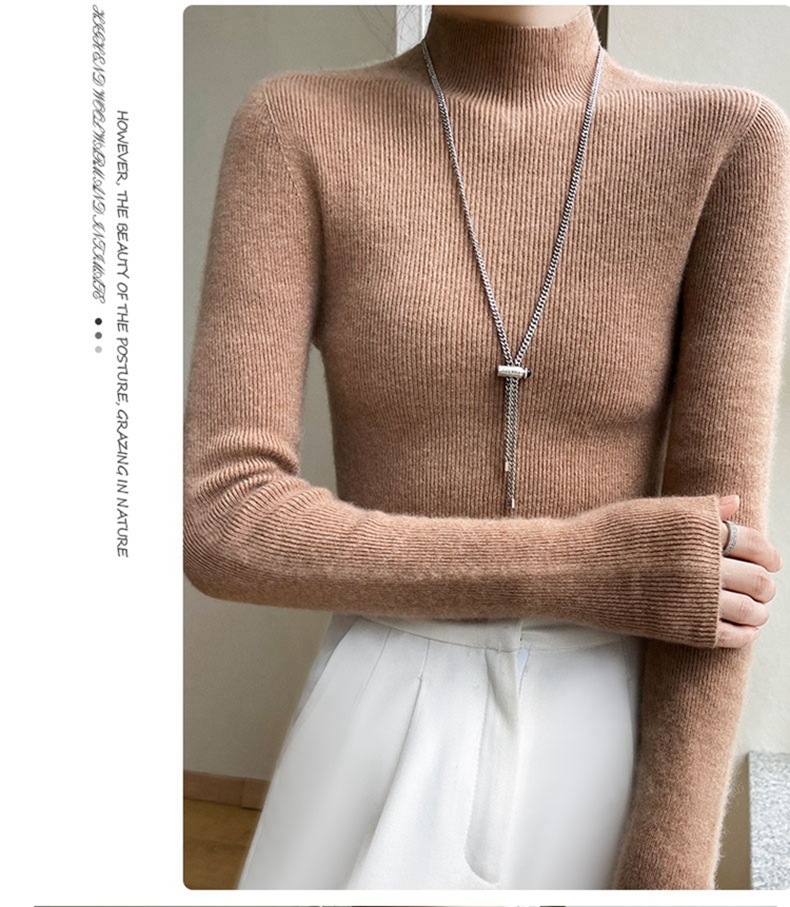 100 ソリッドカラーオールウールボトリングシャツ女性の長袖ストライプスリムニットセーター 25 新しいハーフタートルネックカシミヤセーター