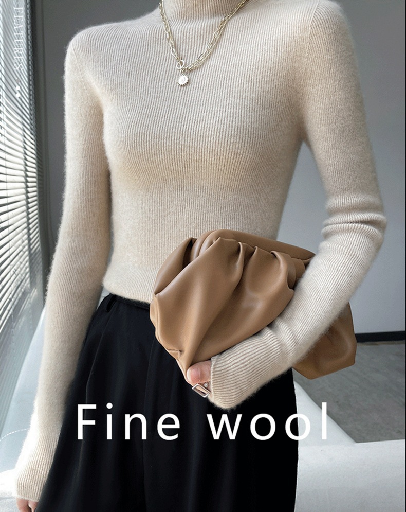 可机洗无缝一体精纺纯羊毛衫女款半高领扬子纱内搭秋冬新款打底衫