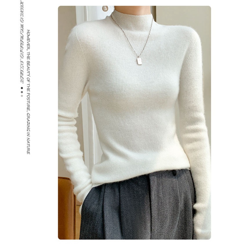 純粋なウール2024の新しい山の襟の巻きの女性のゆったりしたプルオーバーのウールの中にニットの底のセーターを掛けます。