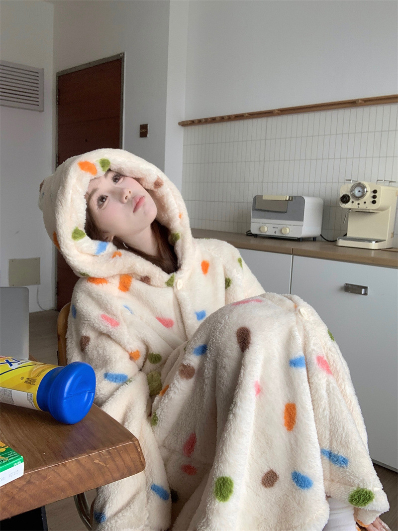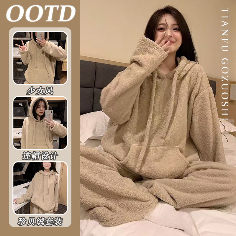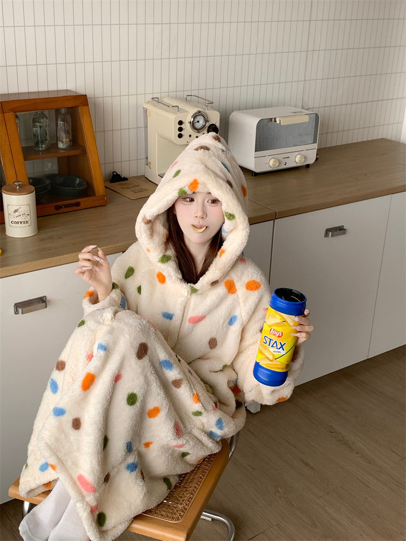 2025新款韩版加厚90-300斤加厚羊羔绒连帽睡衣冬季可外穿家居服