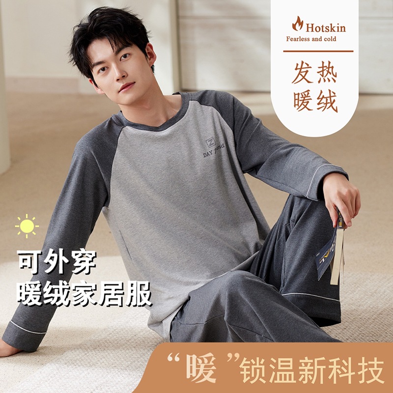 2025新款韩版德绒休闲睡衣男秋冬季套头长袖长裤男羊毛蚕丝家居服