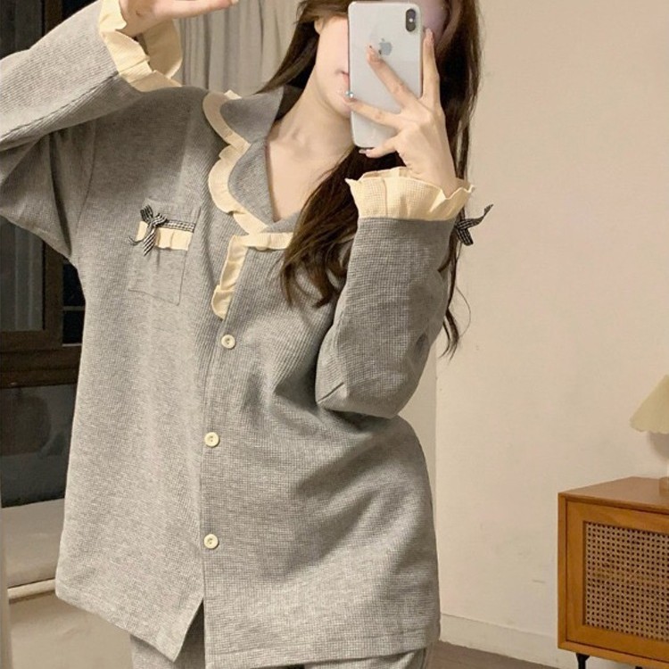2025年春秋新款韩版网红ins简约撞色春秋长袖仿棉睡衣女家居服