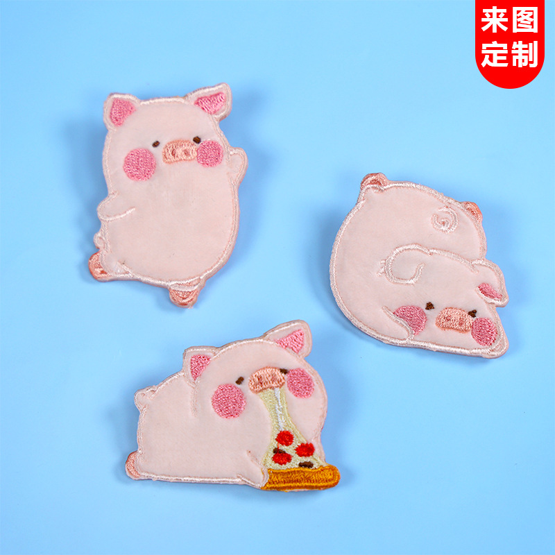 カスタマイズされたかわいい漫画のぬいぐるみ子豚バッジ、刺繍バッジ、パッチ、刺繍ピン、ボウルバックル、布ラベル