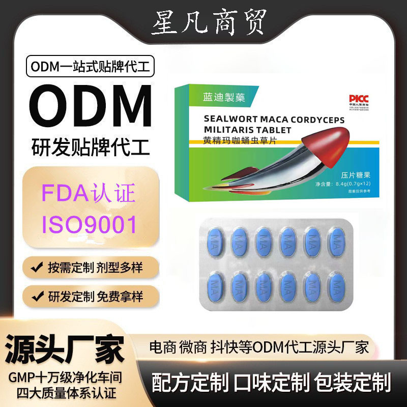 小蓝片12粒黄精玛咖蛹虫草片男性小钢炮压片糖果一件代发批发