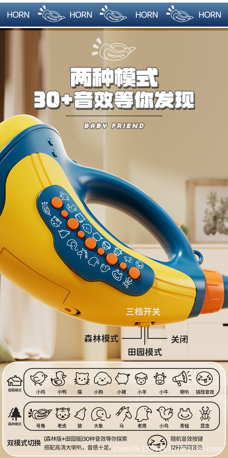国境を越えた動物コレクションホーンシミュレーション効果音ブローミュージックホーンホーン楽器子供男性と女性の音楽演奏おもちゃ