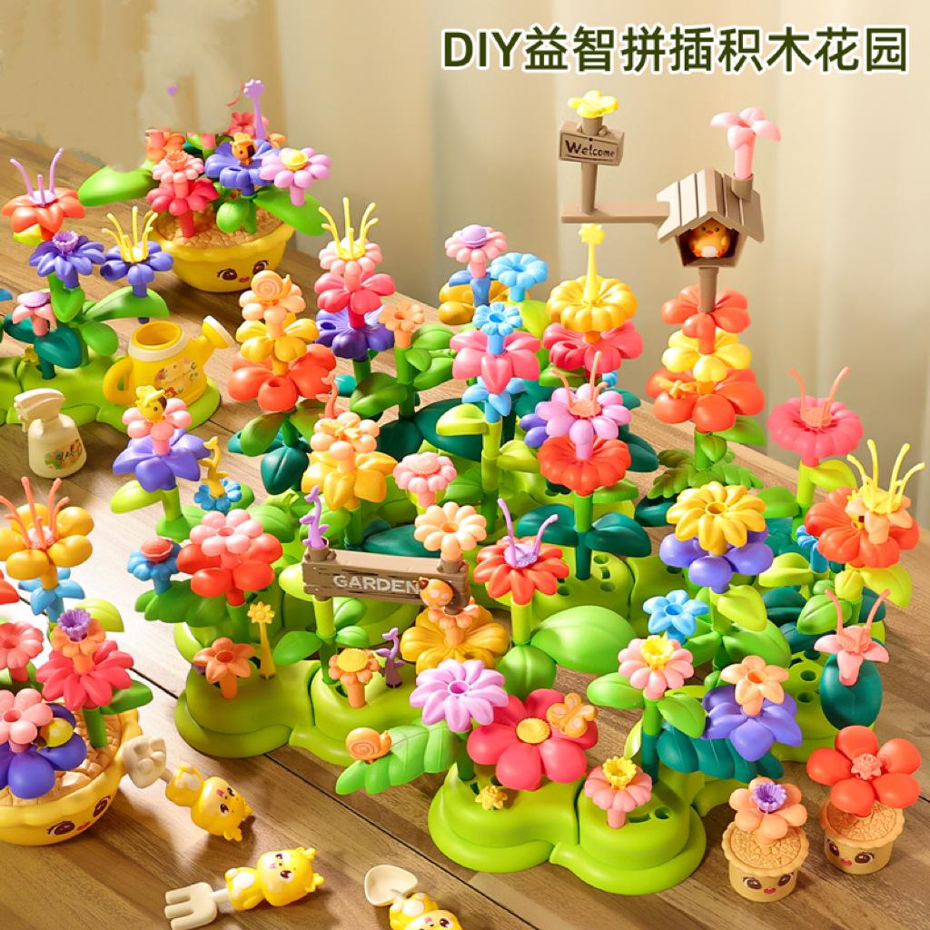 新しい花の積み木組み立て教育玩具女の子のためのさまざまな庭 DIY フラワーアレンジメント子供の澄海おもちゃ卸売