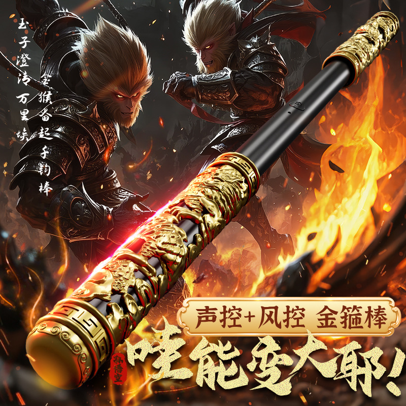 如意金箍棒音声制御自動伸縮男の子レーザー剣悟空子供のおもちゃ魔法の蛍光スティック黒