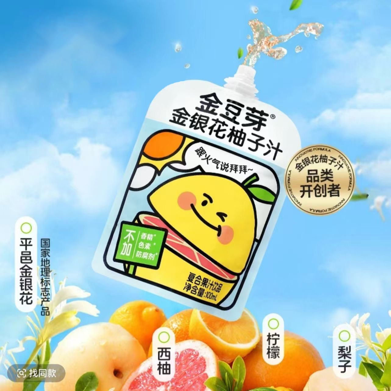 金豆芽金银花柚子汁 100ml*13袋/箱便携袋装 复合果汁饮品