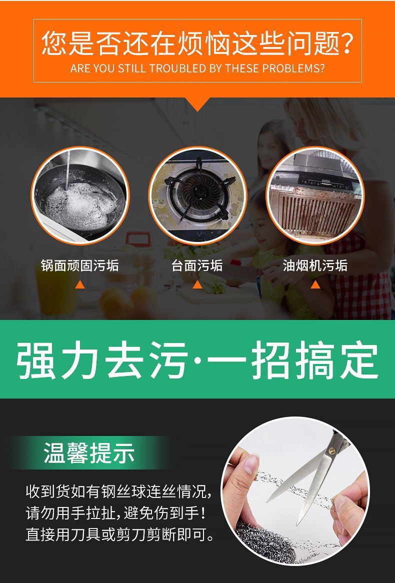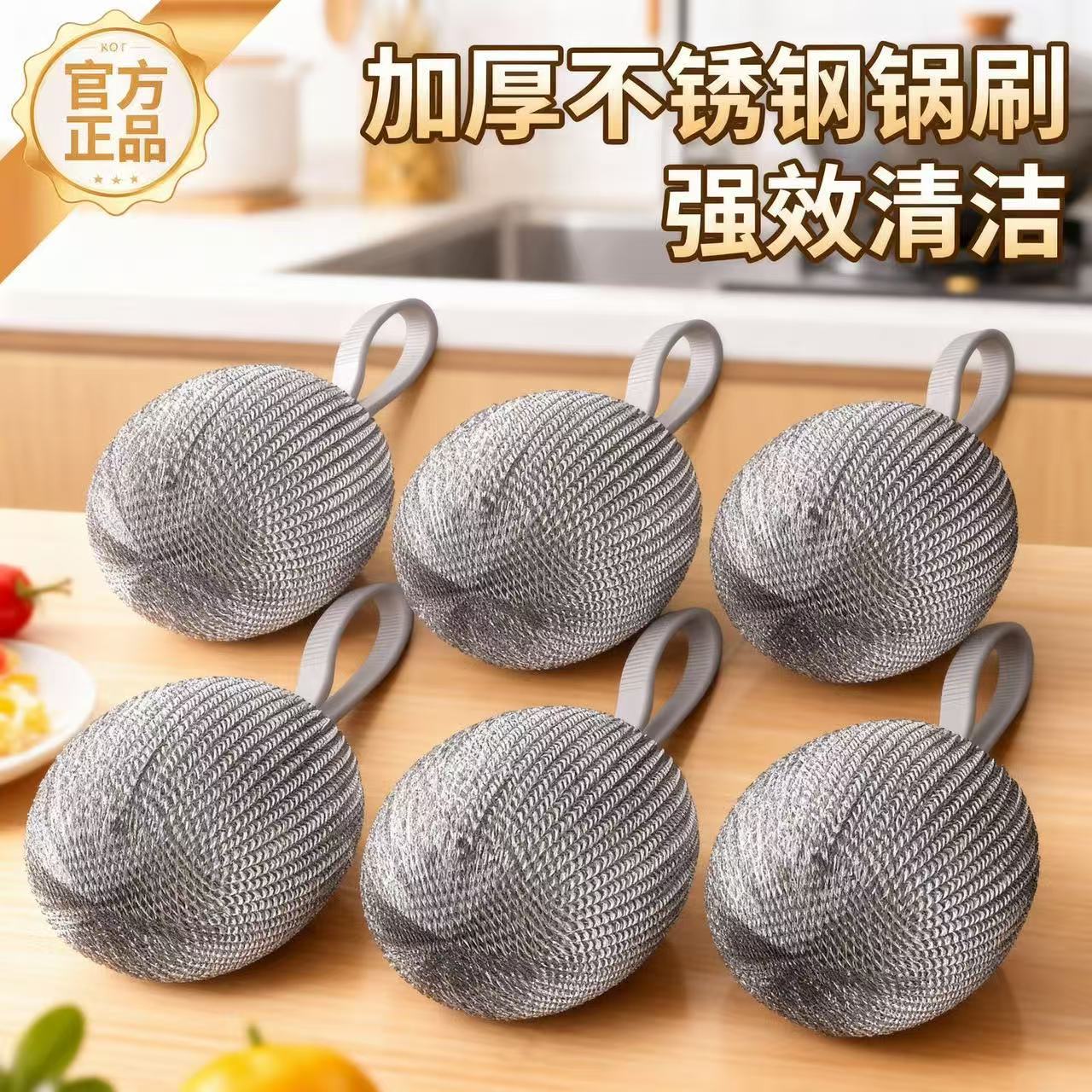 スチールボールはストラップを持っています。ステンレスの清潔なボールは落ちません。錆びない家庭用キッチンブラシ鉄鍋の食器洗い神器です。