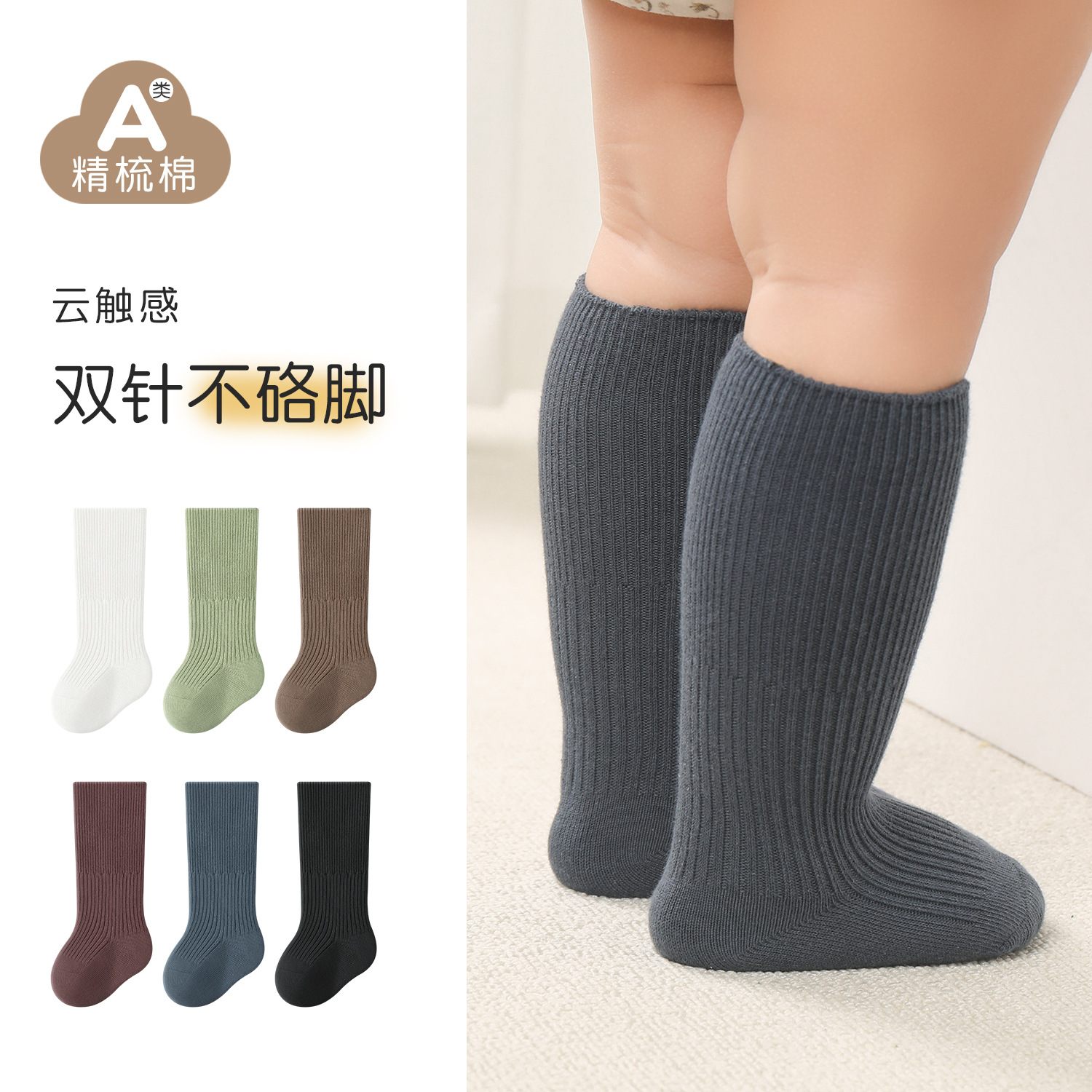 敏榴秋冬新作子供用靴下双針純色無骨赤ちゃん靴下韓国潮範男女子供中筒綿靴下