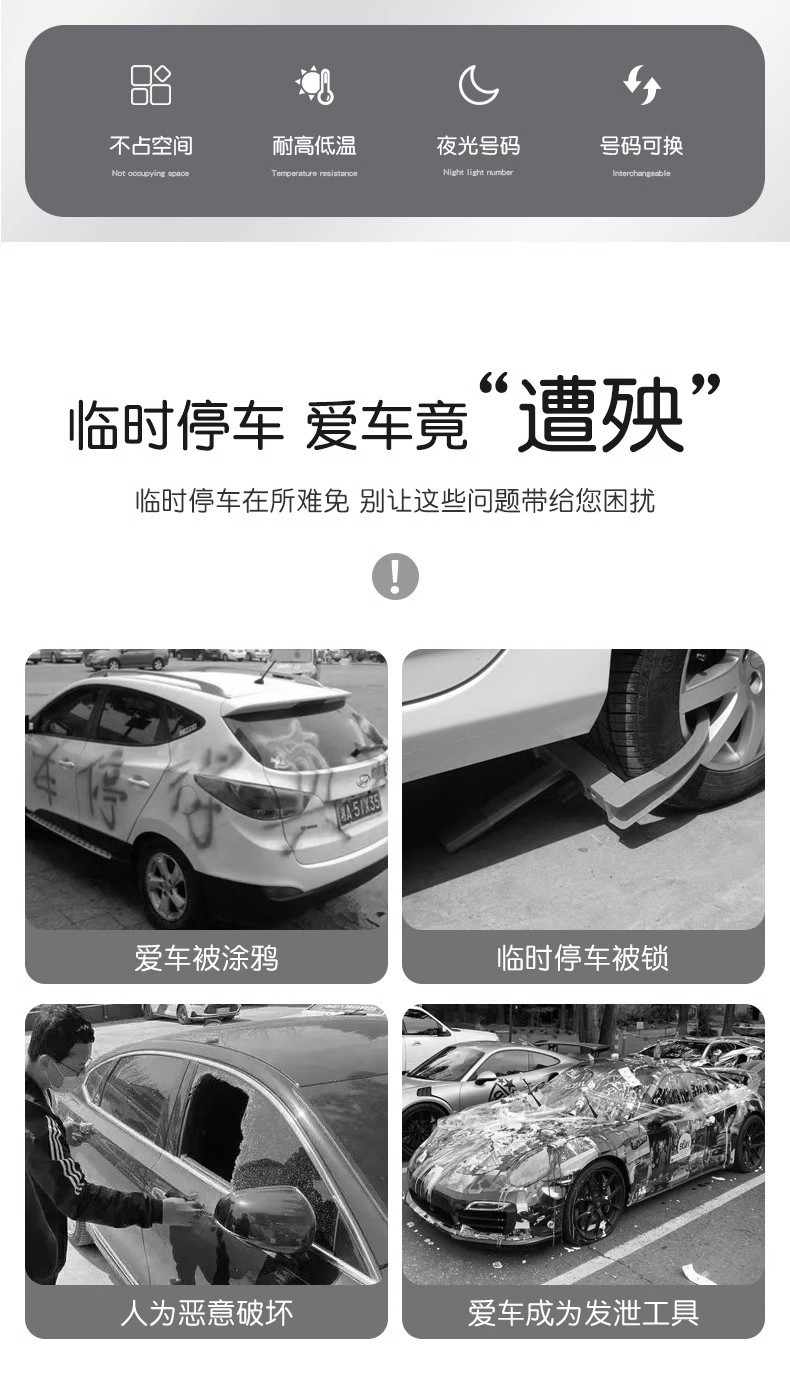 新款临时停车牌夜光隐藏式电话号码牌磁吸移车挪车牌汽车内饰用品