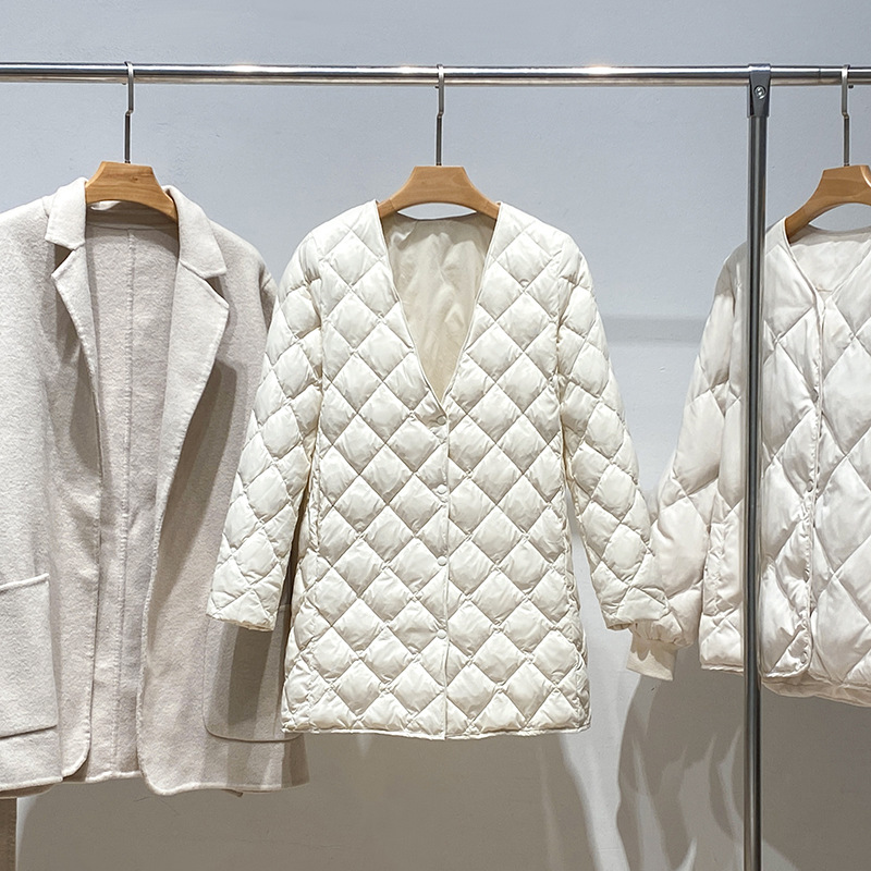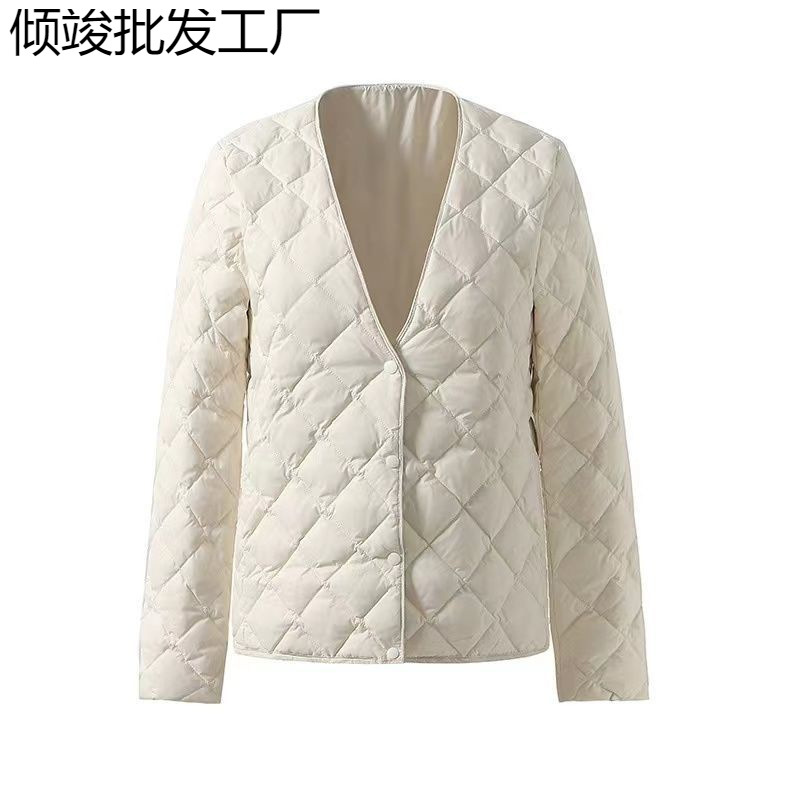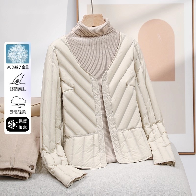 95% 白鴨絨毛2024秋冬軽薄vネック内胆ダウンジャケット女性の短いタイプの修身保温下コート