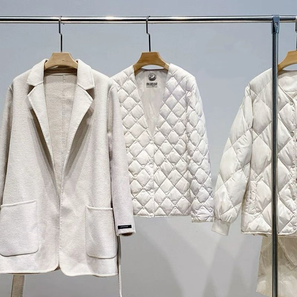2025秋冬大衣内搭90白鸭绒轻薄羽绒服女短款V领内胆修身保暖打底