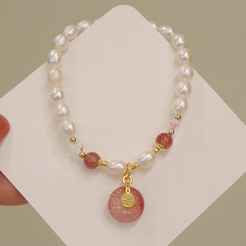 朱砂手串女本命年平安瓢箪平安ボタンブレスレット福禄淡水真珠串ビーズアクセサリー