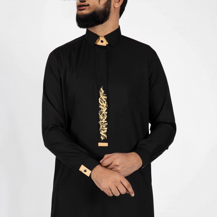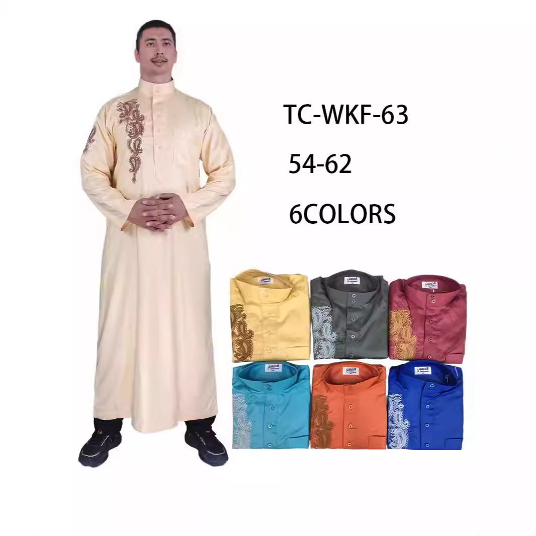新しい中東イスラム教徒男性ローブ長袖刺繍サウジアラビアエスニックスタイルオマーンローブ在庫あり