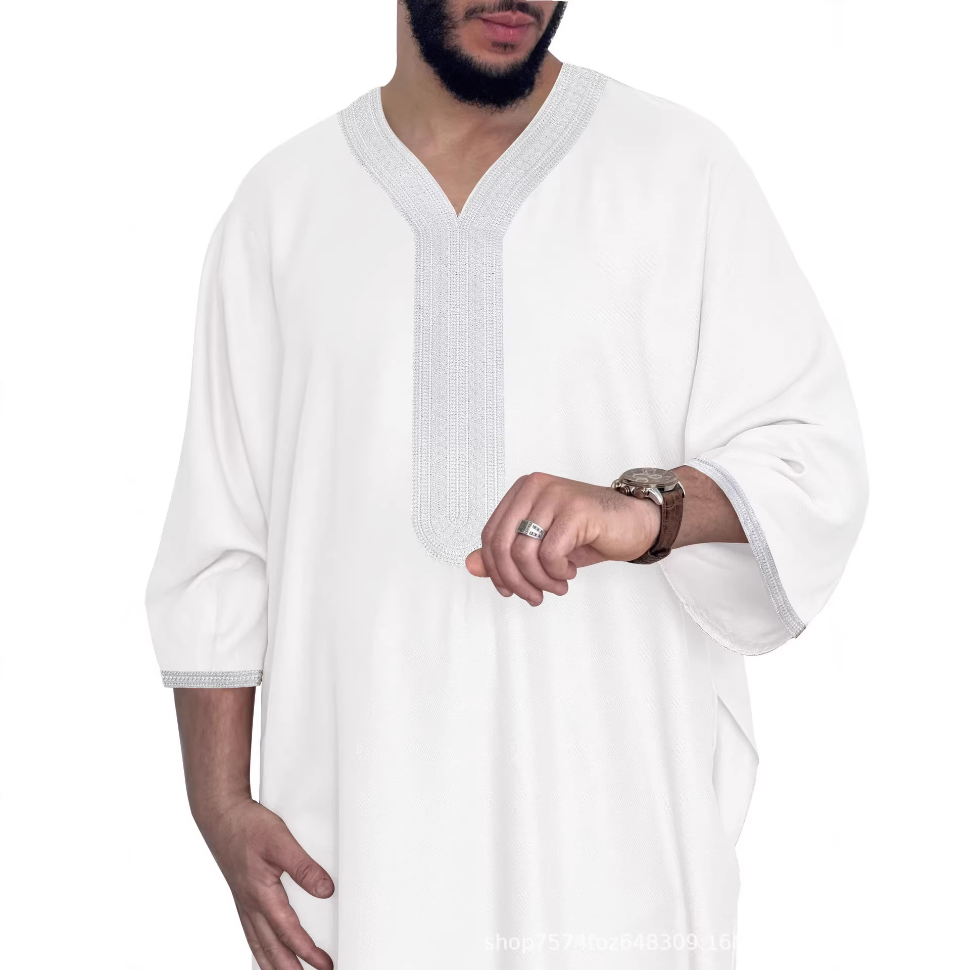 2025 新中東男性服クロスボーダーイスラム教徒ミッドスリーブ刺繍ローブエスニックスタイルモロッコローブ
