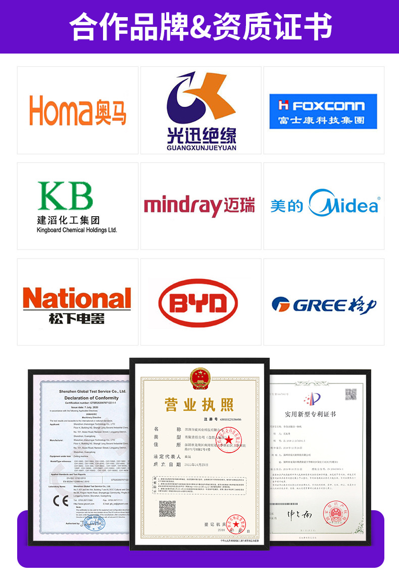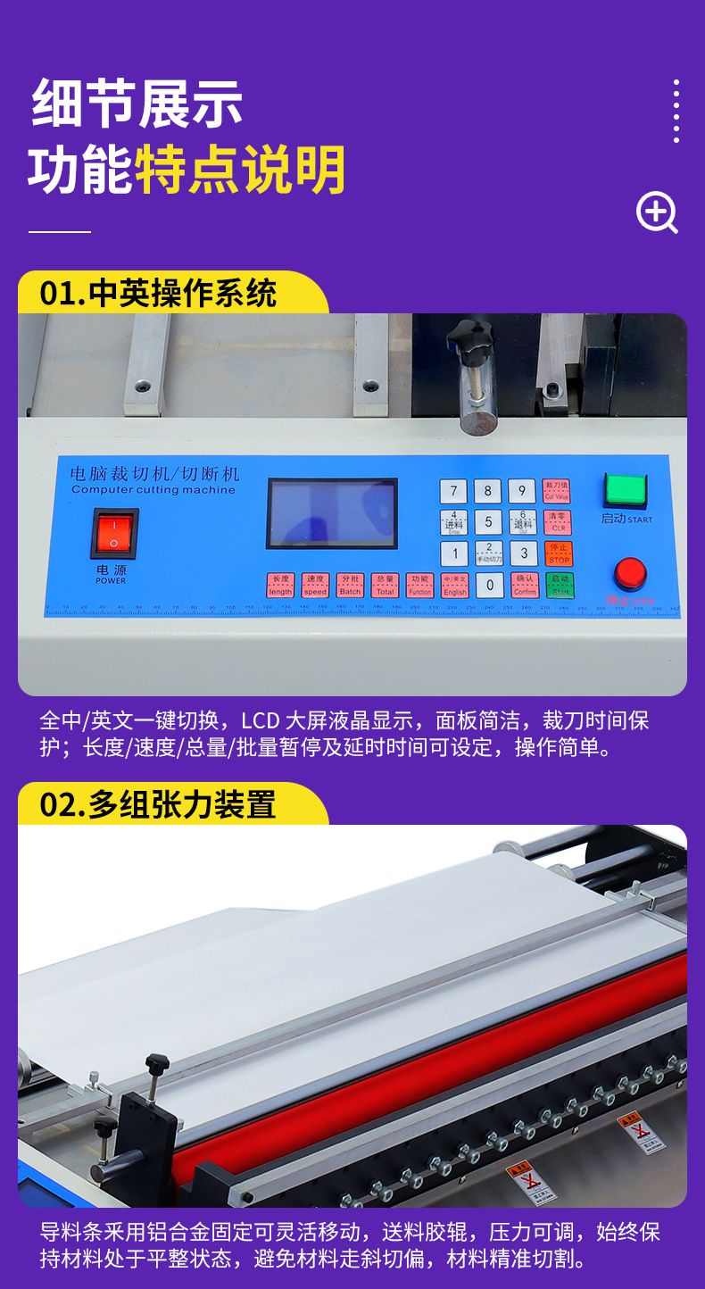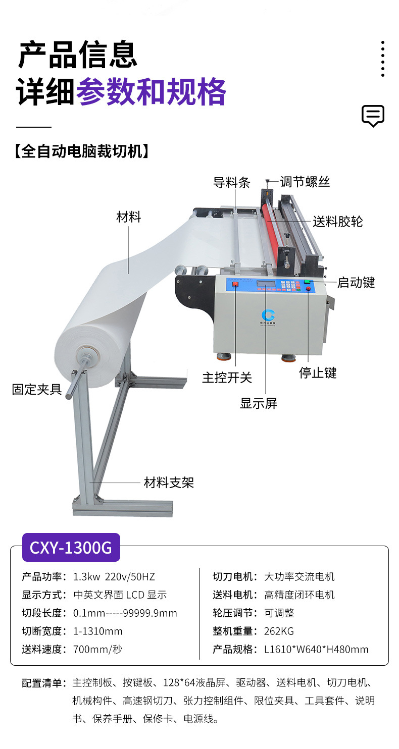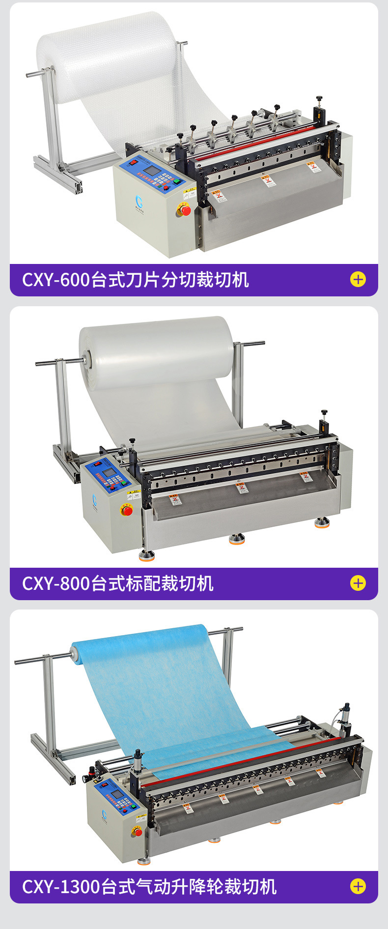コンピュータ全自動裁断機、不織布・革縦横切断機、EVAフィルム穿孔機、ポリエステル生地裁断機