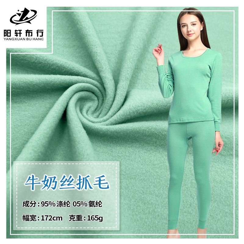 100D牛奶丝抓毛布料涤纶针织弹力打底裤内衣家居服牛奶丝拉毛面料
