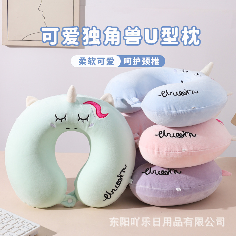 ユニコーンの記憶綿の丸い頭のu型枕の漫画の首の枕の飛行機の旅行の頭の枕の携帯用の車の学生の首