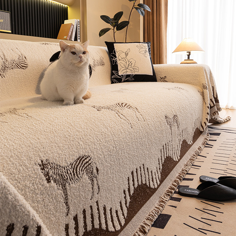 2026新款斑马纹舒棉绒简约风沙发套罩全包万能沙发巾四季通用现货