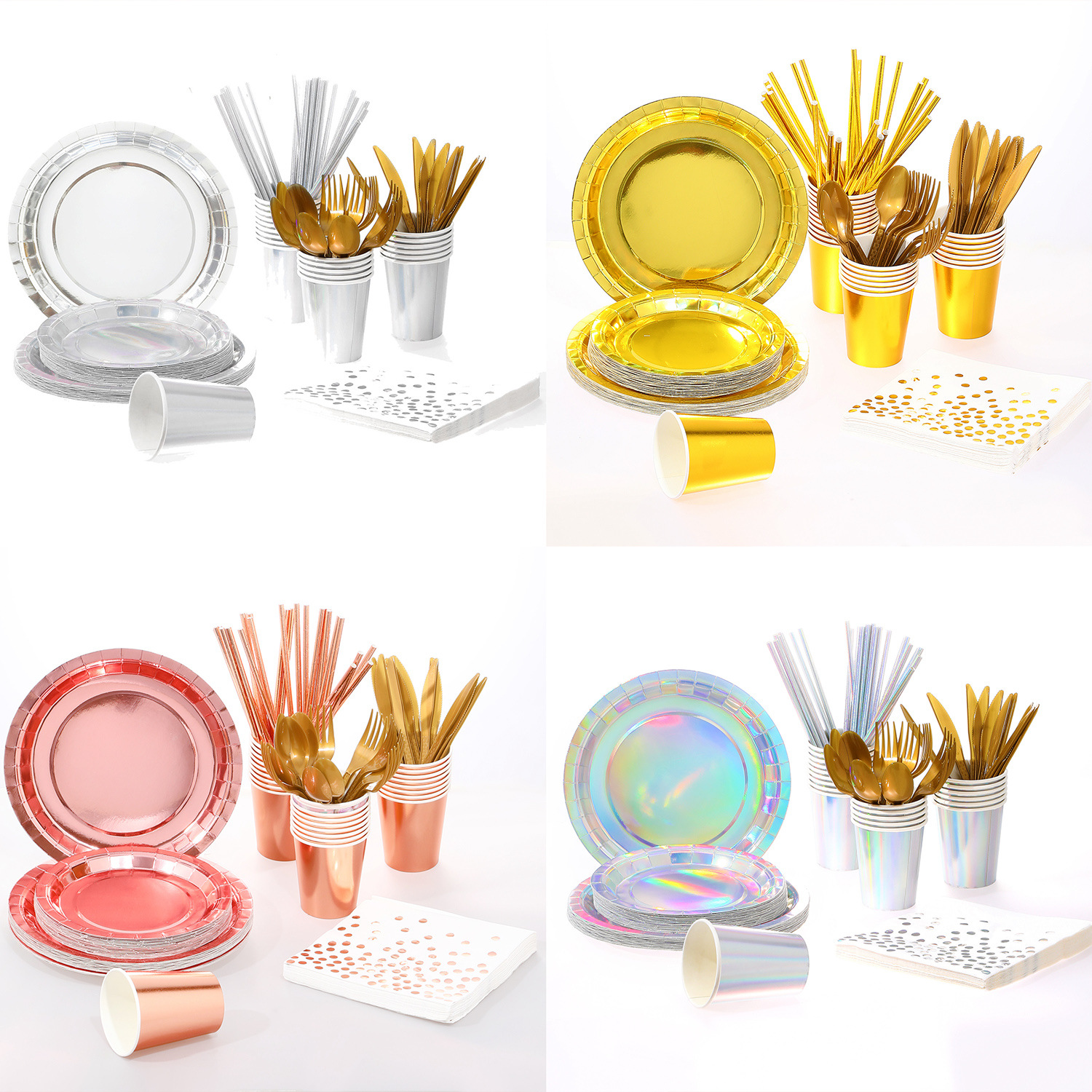 派手なレーザーパーティー食器セット使い捨て紙コップ紙コップペーパータオルストロークロスボーダー