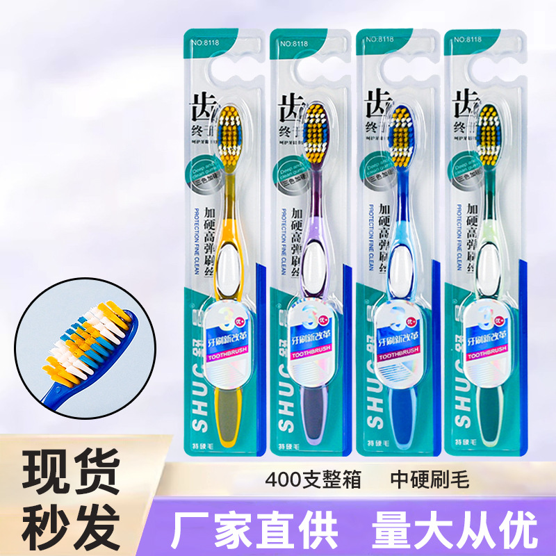 舒晨歯ブラシ硬毛成人家庭用高級独立包装中硬毛深層清潔高密度ブラシ卸売り