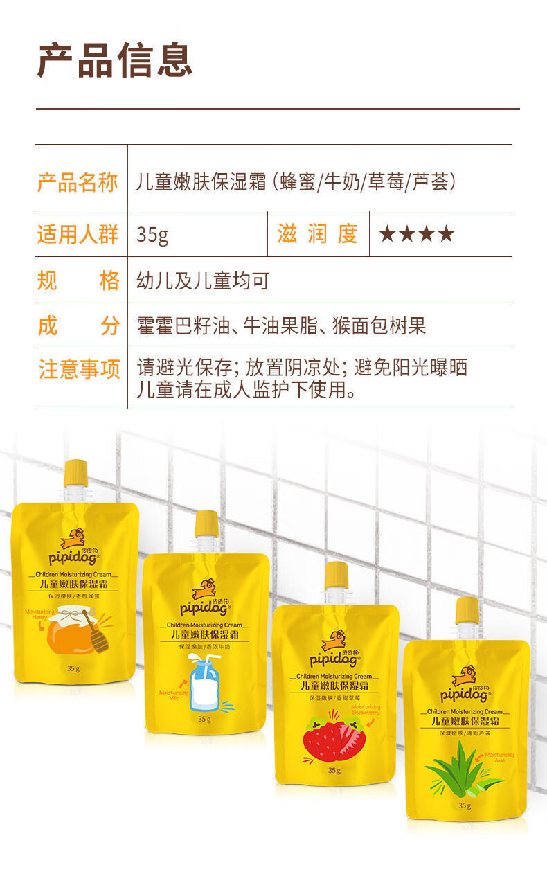 ピピドッグ 子供用 アロエベラ モイスチャライジング クリーム 35g,ピピドッグ 子供用 ハニー ナリッシング クリーム 35g,ピピドッグ 子供用 ストロベリー ナリッシング モイスチャライザー 35g,ピピドッグ 子供用ミルク柔軟栄養クリーム 35g