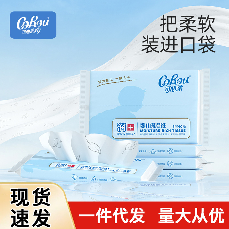 可心柔V9新生児赤ちゃん専用ソフトティッシュ保湿雲柔クリーム紙3層40抽出家庭用卸売り