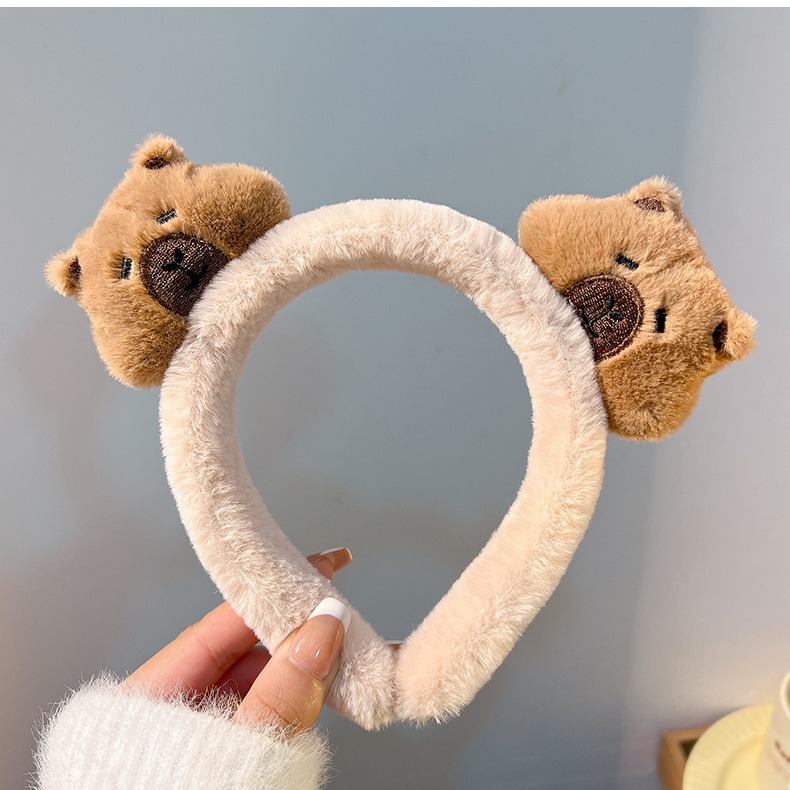新品の2024ぬいぐるみのカピバラの髪のカチューシャの女性の顔を洗って化粧してマスクのカチューシャをつけます。