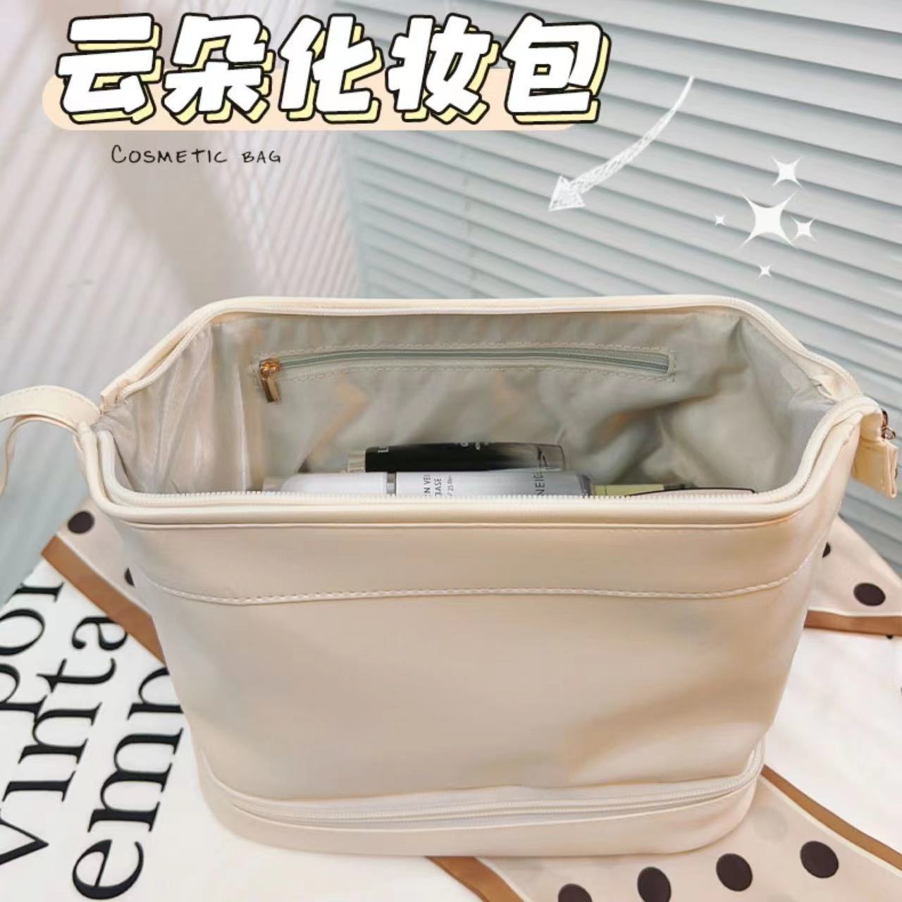 ダブルワイドオープンで大容量!ふわふわ化粧品バッグ女性の 2024 新しいハイエンド旅行ポータブルトイレタリー収納袋