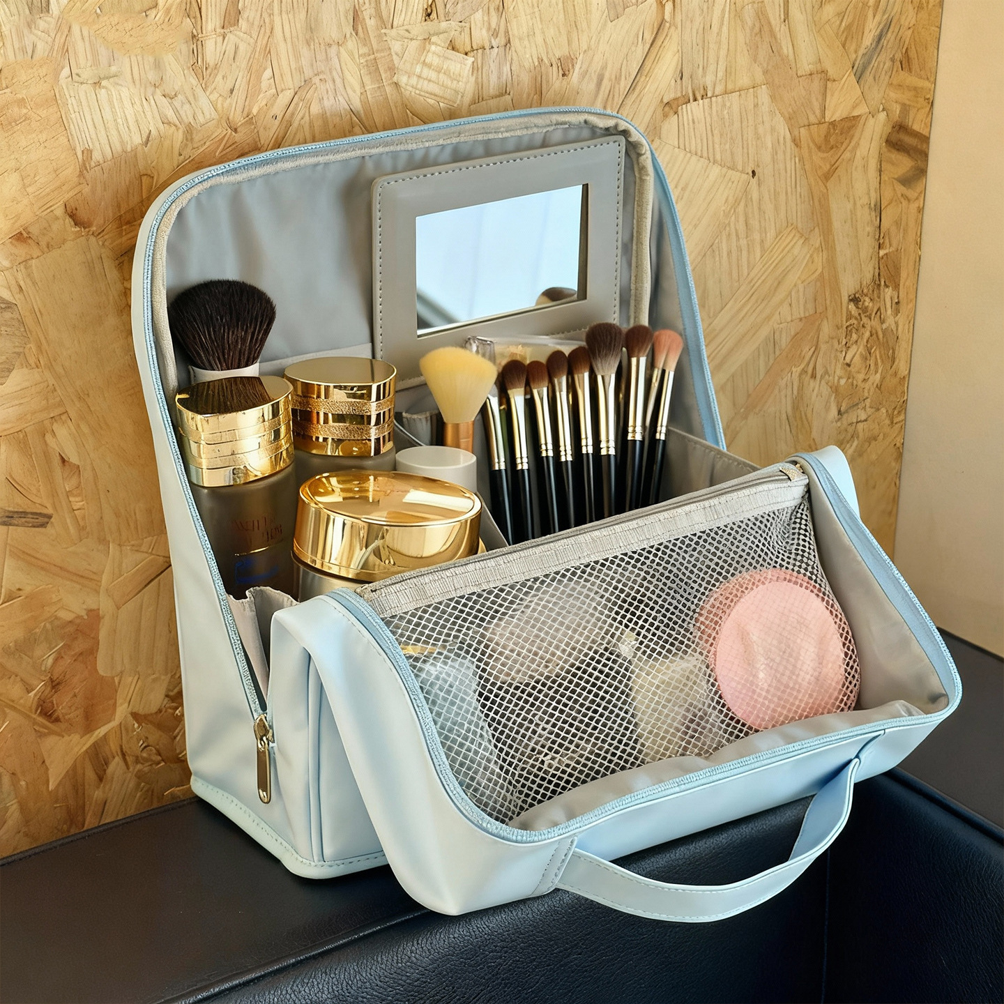 化妆包大容量高级感化妆箱便携外出分区笔袋可立式带镜子收纳包