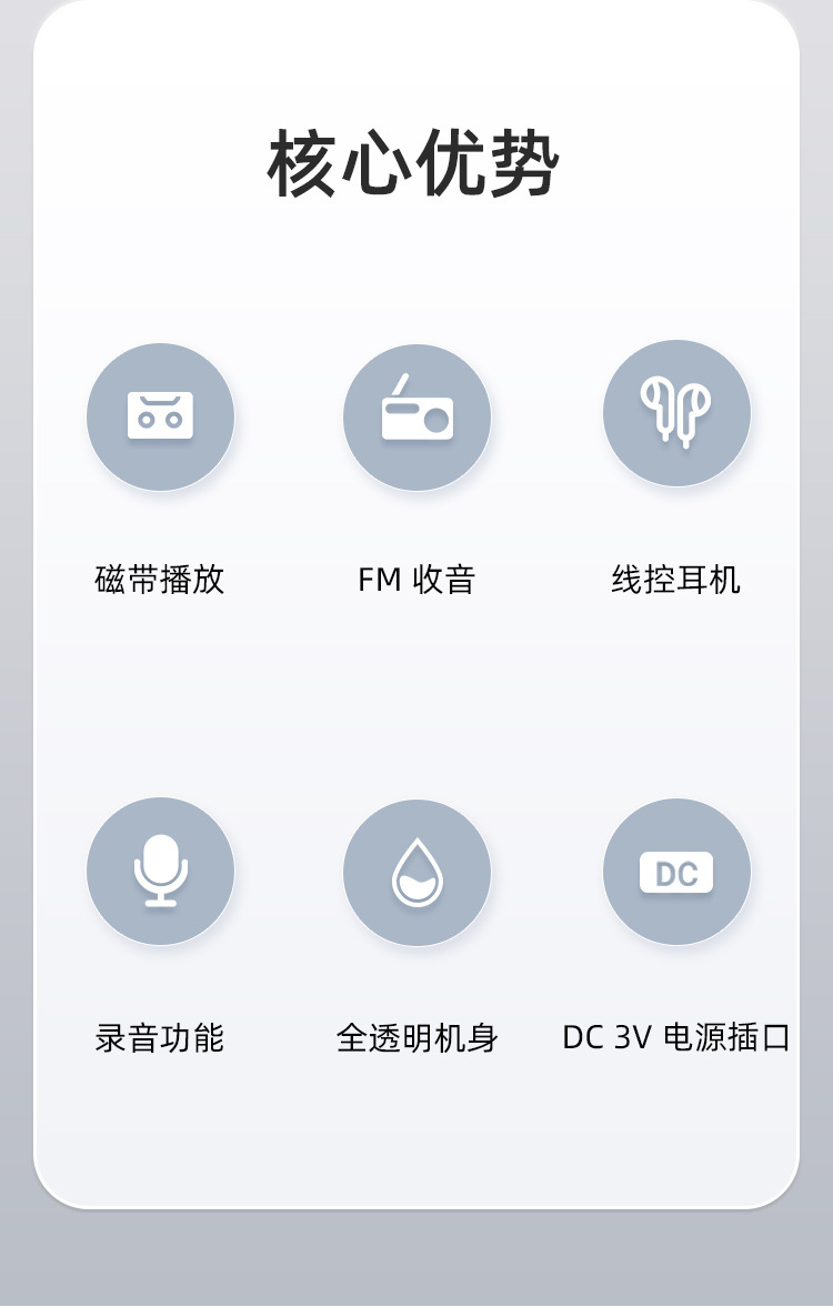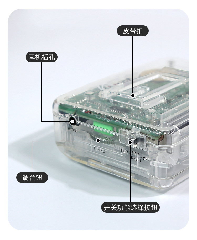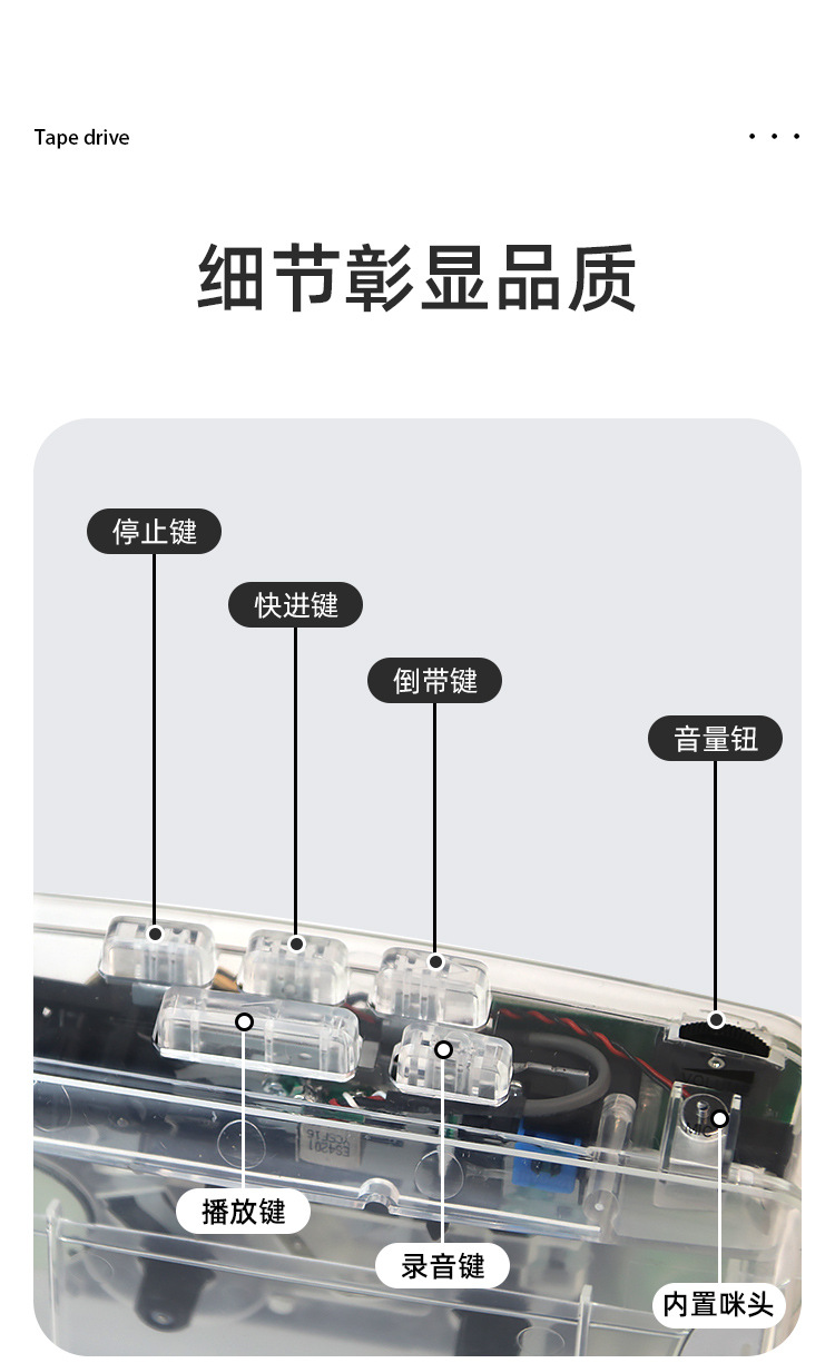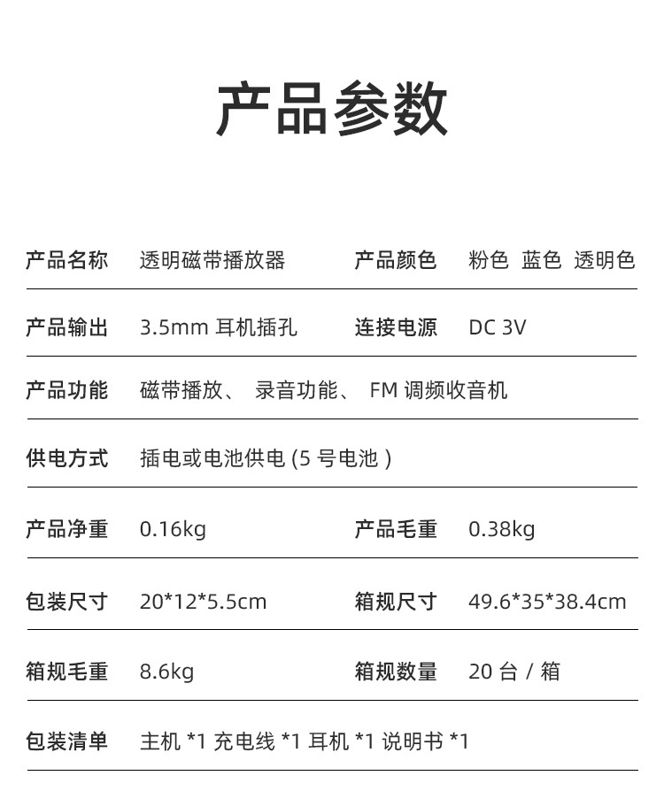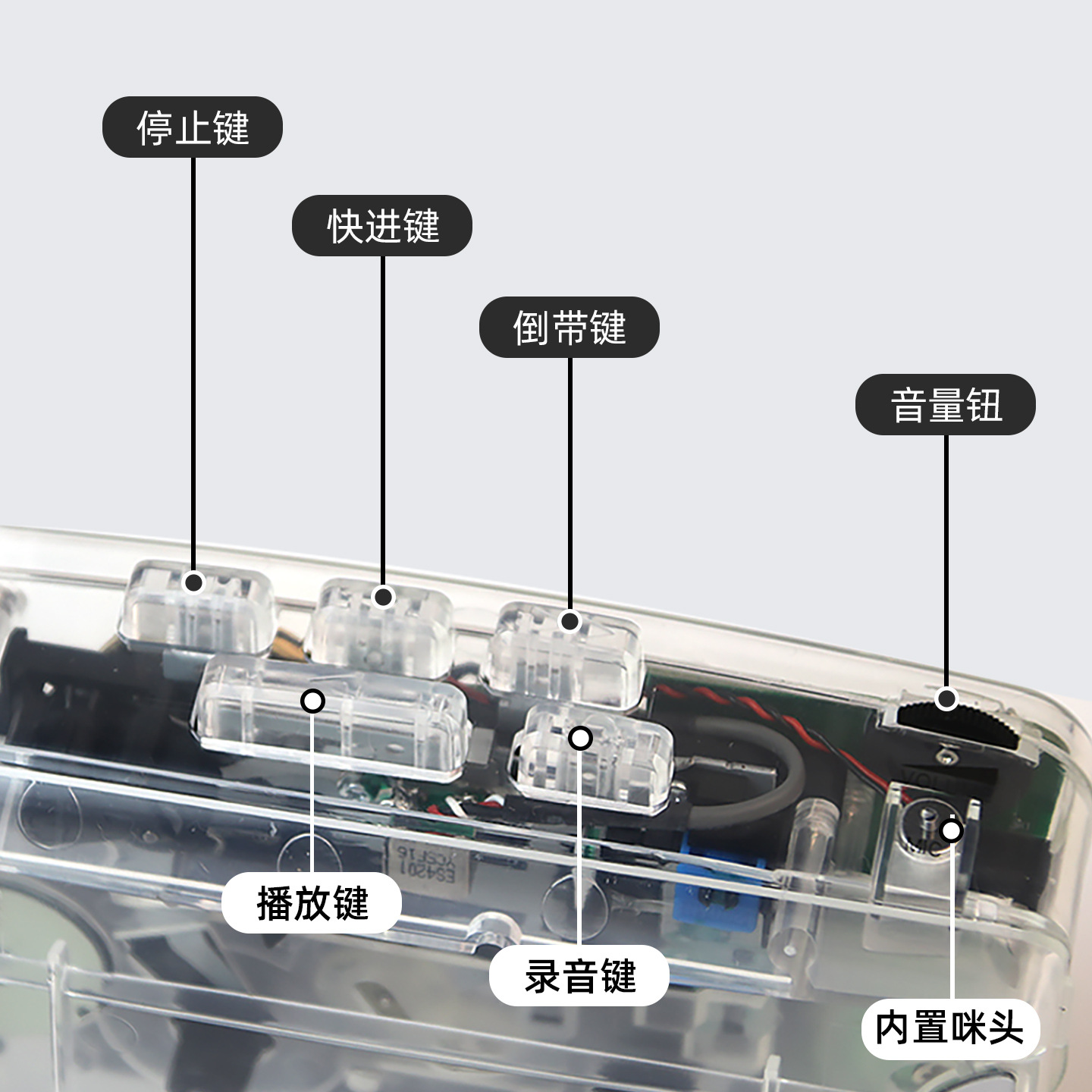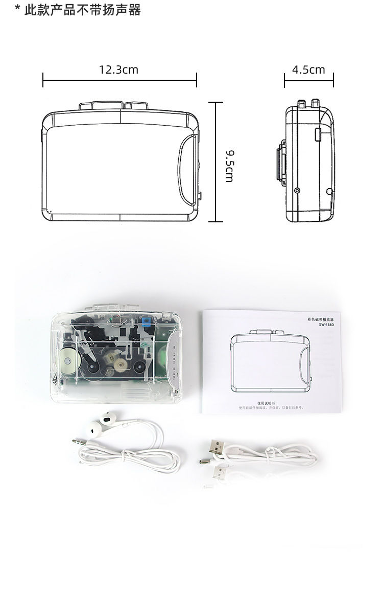 磁带机功能;1.磁带播放 2.fm收音 3.录音功能 4.双模式供电 磁带机需要带耳机听