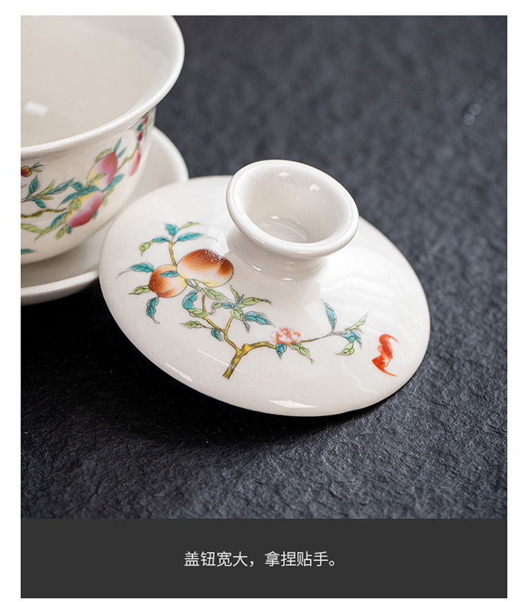 ホバリング蓋羊脂玉泡茶三才徳化陶磁器白磁蓋茶杯家庭用工夫茶器茶碗