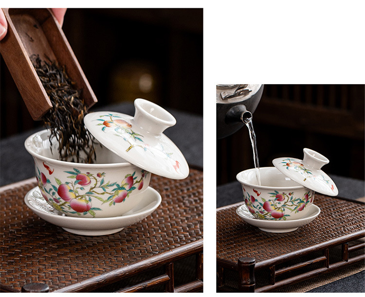 蓋碗陶磁器茶道具茶碗三才蓋碗パーマ防止手掴み泡茶碗工夫蓋碗家庭用茶器セット