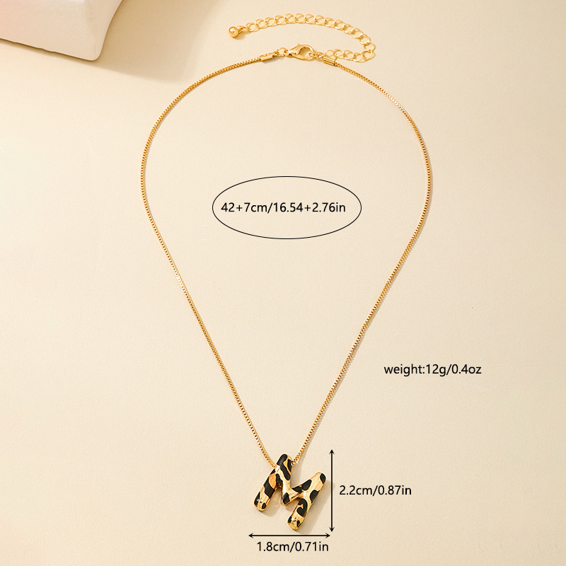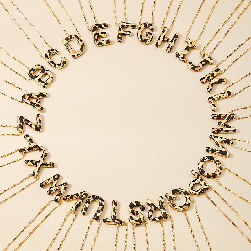 1条欧美时尚个性斑点豹纹时髦女人金属26英文字母女士项链日常款