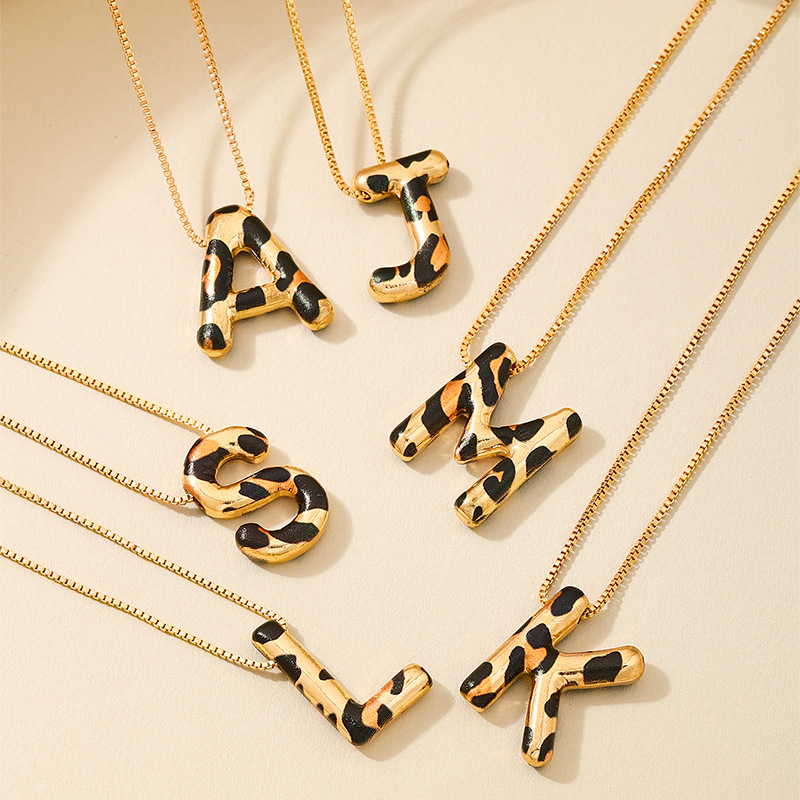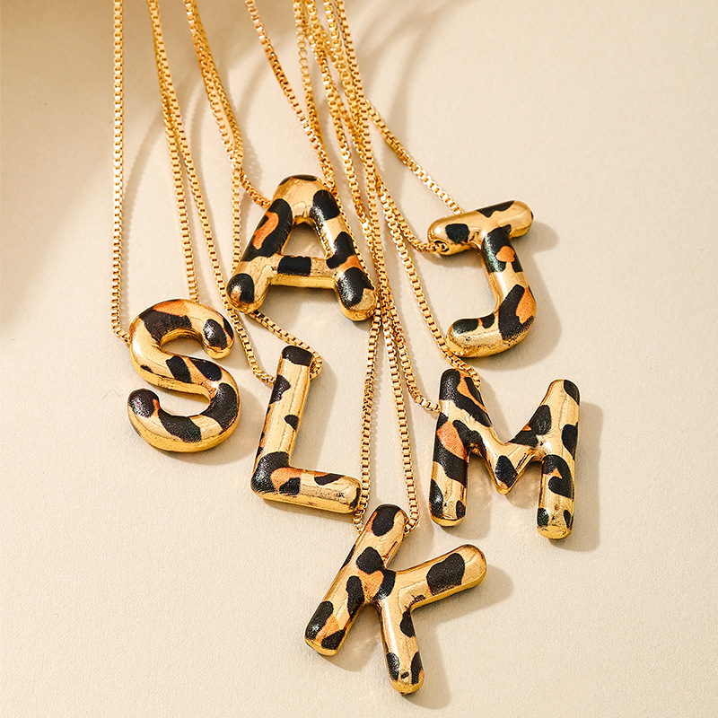 1条欧米のファッションの個性の斑点の豹の紋様の流行の女の金属の26英語のアルファベットの女性のネックレスの日常の金